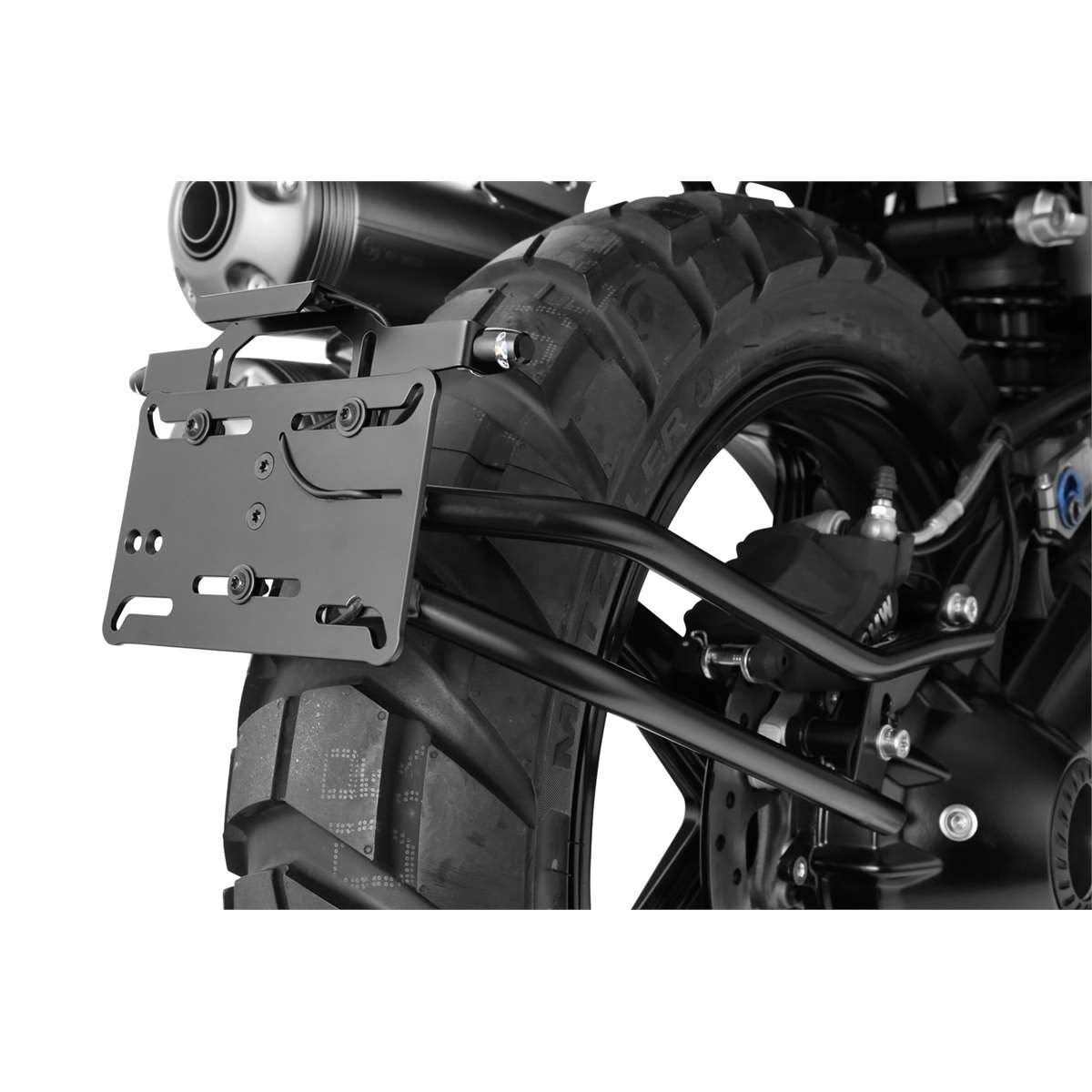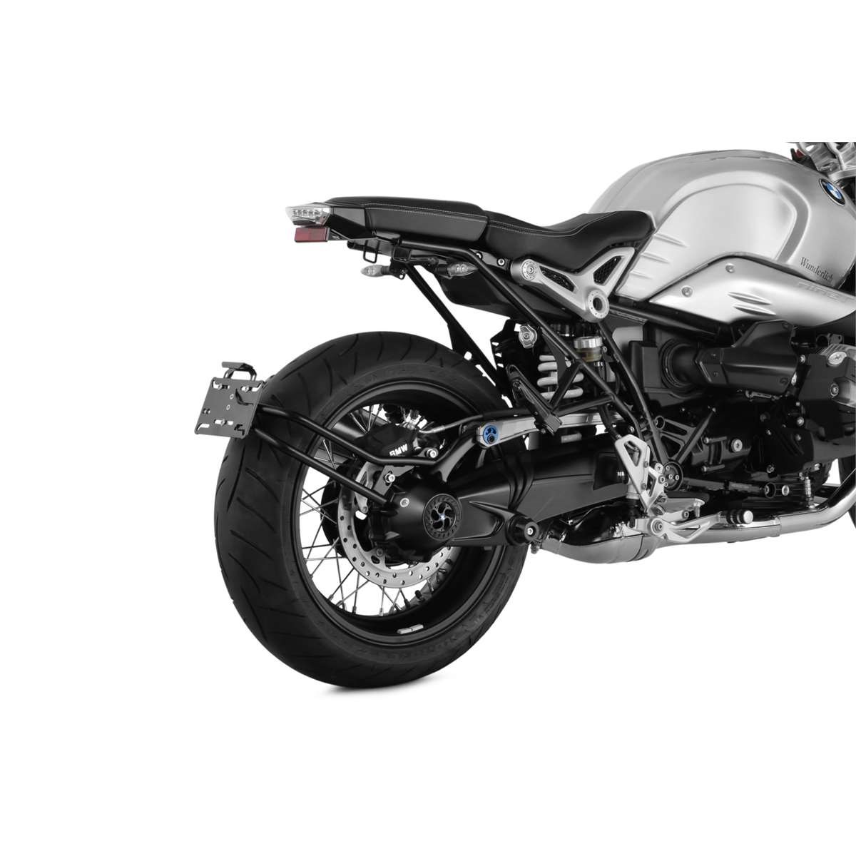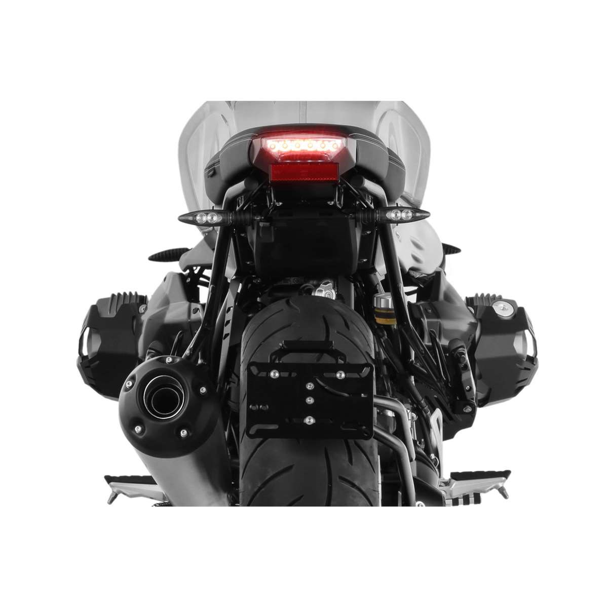 Lieferumfang: Grundhalter unter der Sitzbank mit drei möglichen Blinkerpositionen (zur Fahrzeugachse und in der Breite einstellbar), Nummernschildhalter, LED-Nummernschildbeleuchtung, Katzenauge/ -Träger und kompletter Einbausatz.