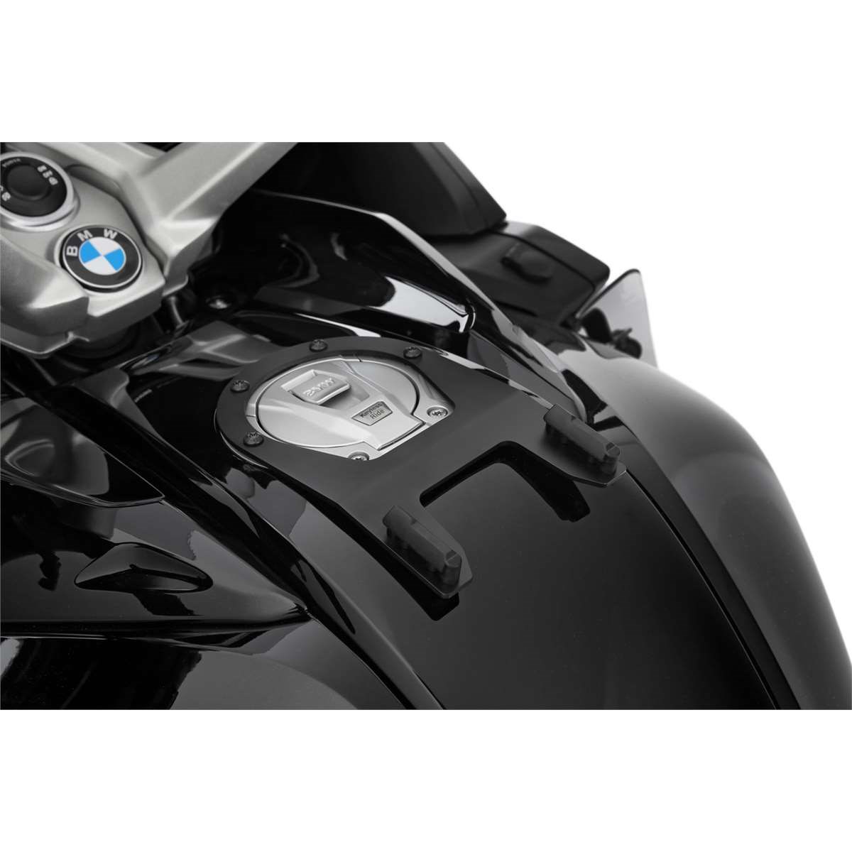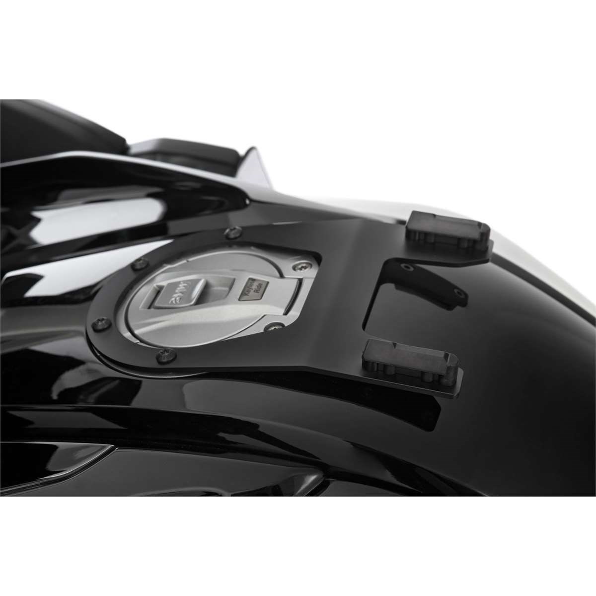 Der modellspezifische, sogenannte Tankring bildet die solide Basis zur sicheren, mechanischen Arretierung der CLICK BAG Tankrucksäcke. Zum Befestigen wird der CLICK BAG von oben in die beiden Führungen des Tankrings eingesetzt, bis das Schloss automatisch verriegelt. Mit einem Riemen am Tankrucksack lässt sich die Arretierung mit einem Zug lösen. So kann der Tankrucksack im Handumdrehen - zum Beispiel zum Tanken – abgenommen werden.