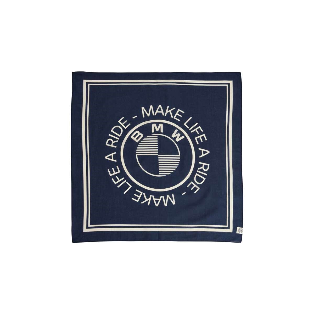 Vielseitig einsetzbares Tuch mit Make life a ride Schriftzug und BMW Logo.