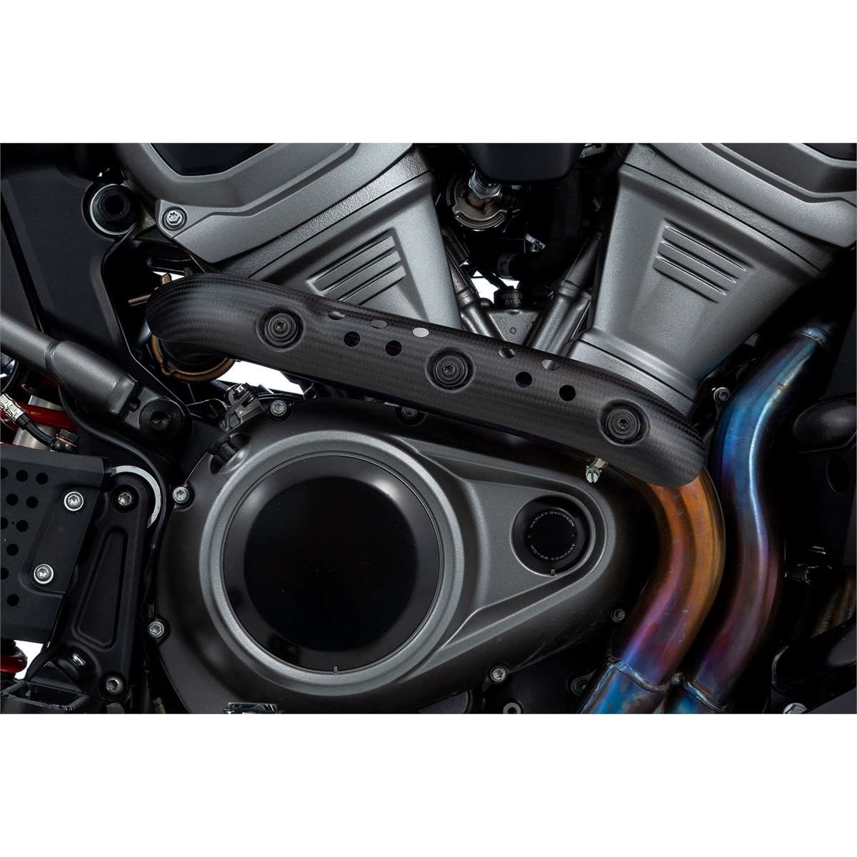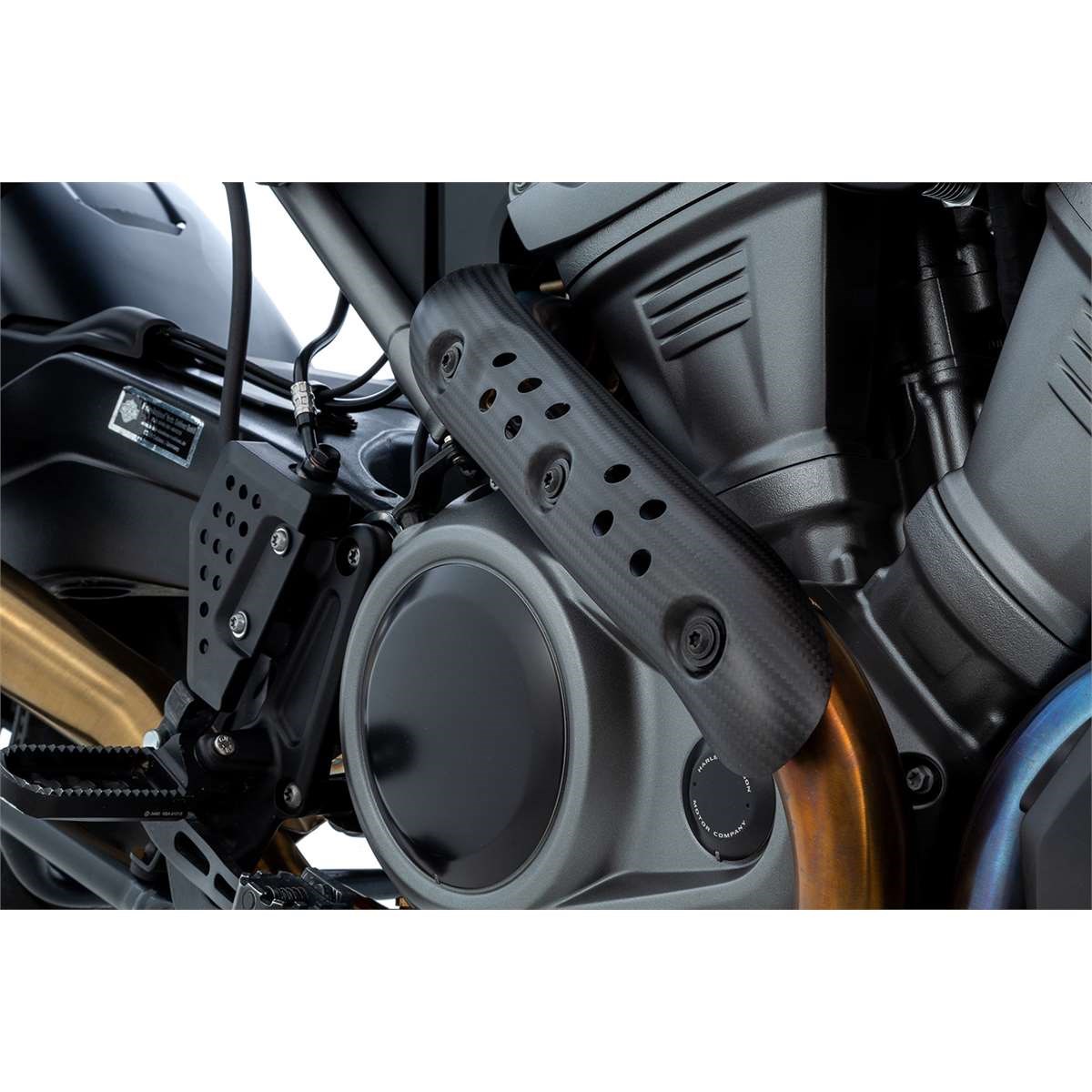 Der Raumfahrtwerkstoff spielt mit bis zu 70% Gewichtsersparnis gegenüber dem Serienteil und mit seiner gewichtsspezifischen Steifigkeit sein ganzes Potential aus. Die Form folgt dabei jeweils der Funktion und integriert sich optimal in das Design des Motorrades. Dabei werden die Linien der jeweiligen Maschine sowie der Werkstoff und die Oberflächentextur angrenzender Serienbauteile berücksichtigt. Diese Carbon-Komponente unterstreicht den High-Tech-Anspruch mit der einzigartigen Anmutung echten Carbons.