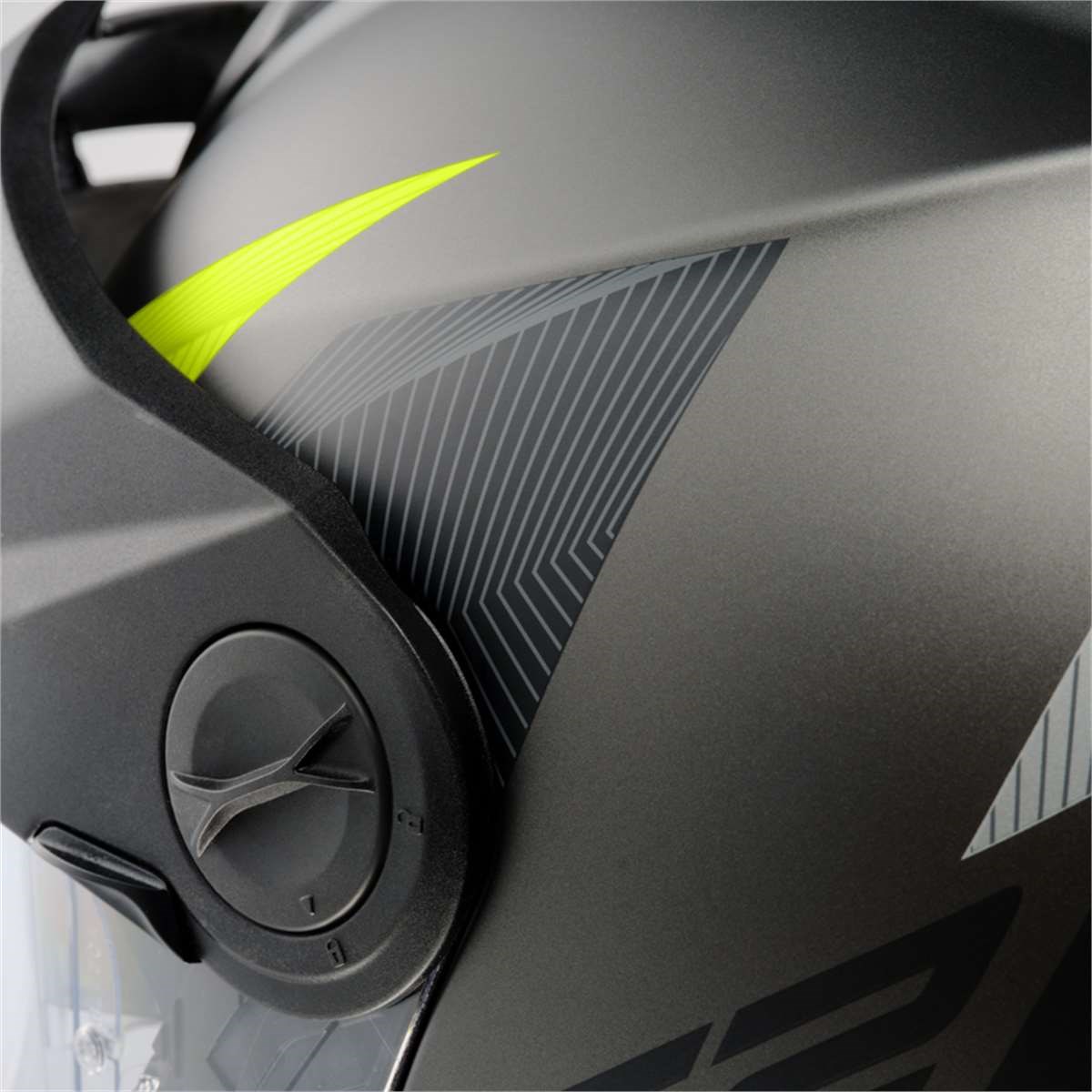 • Reflektierende Bereiche auf dem Windabweiser, Nackenpolster, Visiserabdichtung und Helmsticker für eine verbesserte Sichtbarkeit während des Fahrens mit offenem und geschlossenem Kinnteil.