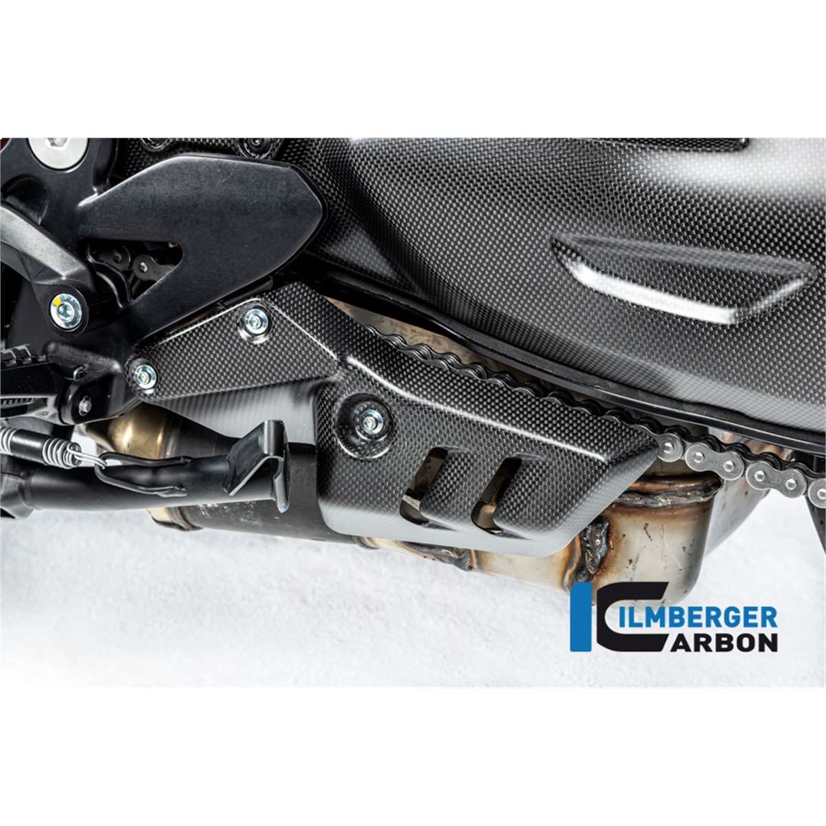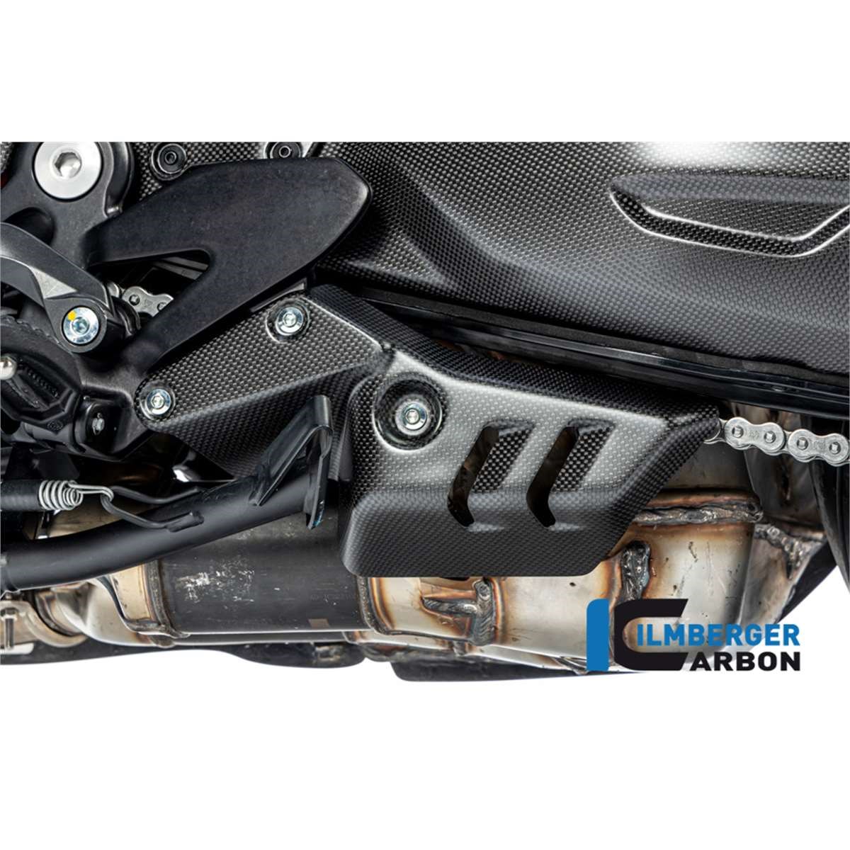 Das linke Cover am Auspuff deckt elegant den Kat auf der linken Seite der Ducati Diavel V4 ab. Die Montage erfolgt schnell und einfach. Die finale Klarlackschicht kommt in der matten Version und ist identisch zu dem verwendeten Klarlack der Ducati Performance Teile