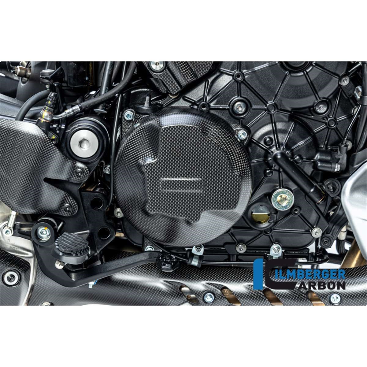 Die Schutzabdeckung für den Kupplungsdeckel schützt das exponierteste Teil des kräftigen Motors der Ducati Diavel V4 und lässt gleichzeitig die fortschrittliche Technik sichtbar. Die finale Klarlackschicht kommt in der matten Version und ist identisch zu dem verwendeten Klarlack der Ducati Performance Teile