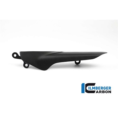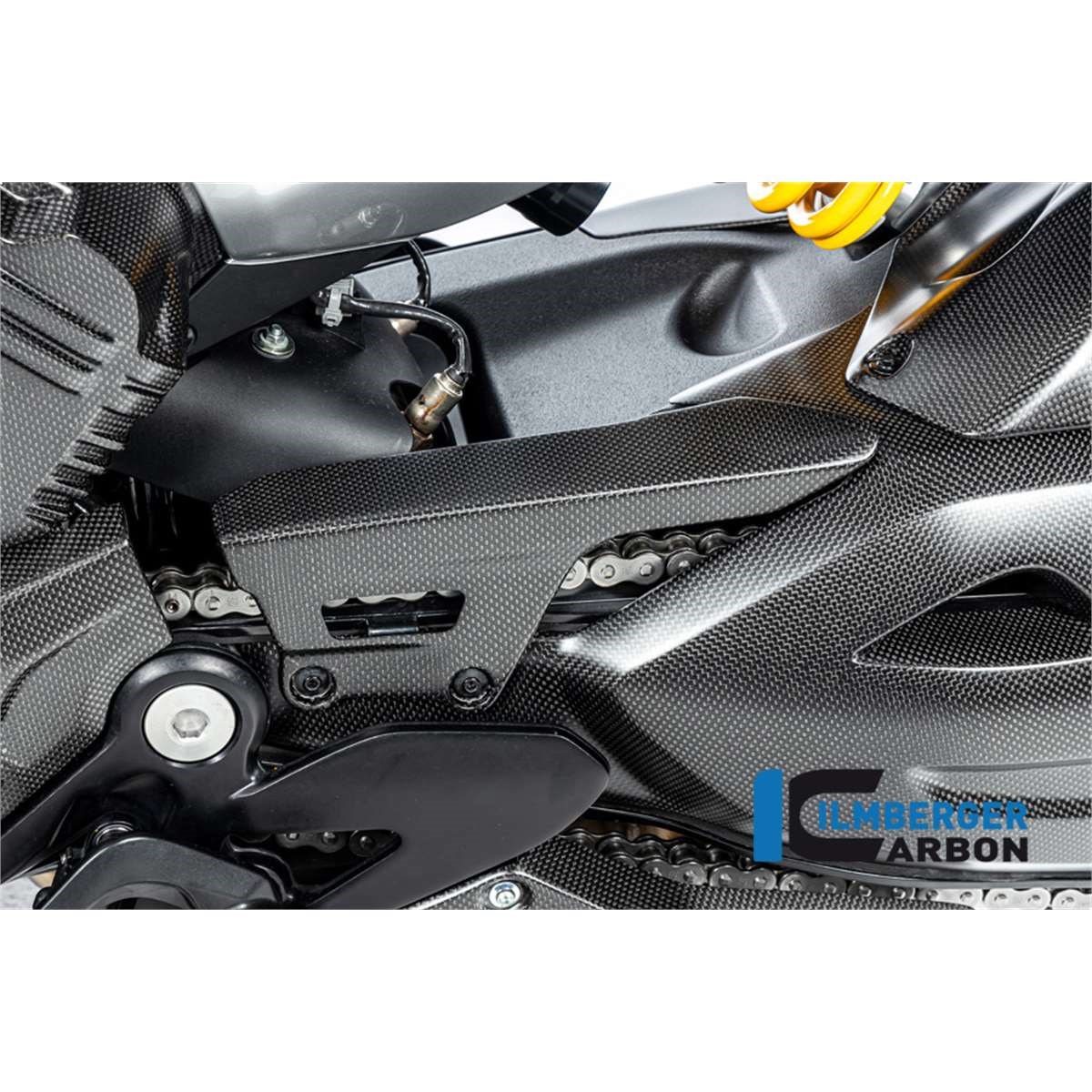 Die Kette der Ducati Diavel V4 zieht mit gewaltiger Kraft über die Schwinge. Ein entsprechender Schutz ist unerlässlich. Der Kettenschutz aus von Ilmberger Carbon erfüllt diese Aufgabe wie kein anderer! Die finale Klarlackschicht kommt in der matten Version und ist identisch zu dem verwendeten Klarlack der Ducati Performance Teile
