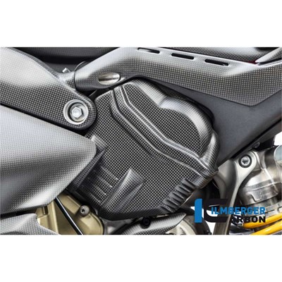 Die Zylinderkopfabdeckung für die Ducati Diavel V4 ersetzt die originalen Plastikteile in einem hochwertigen Carbonteil. Durch die einteilige Ausführung gibt es keine störenden Kanten oder Übergänge und durch die Verwendung des Hochleistungswerkstoffs direkt am Motor wird die brachiale Kraft des V4 nochmals deutlich unterstrichen.