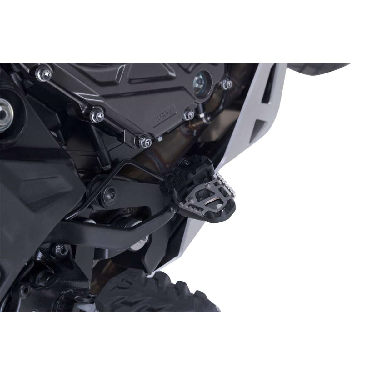 \nSW-MOTECH fertigt diese Fußbremshebel-Erweiterung aus gefrästem Aluminium passend für den original Fußbremshebel der Suzuki V-Strom 800DE.