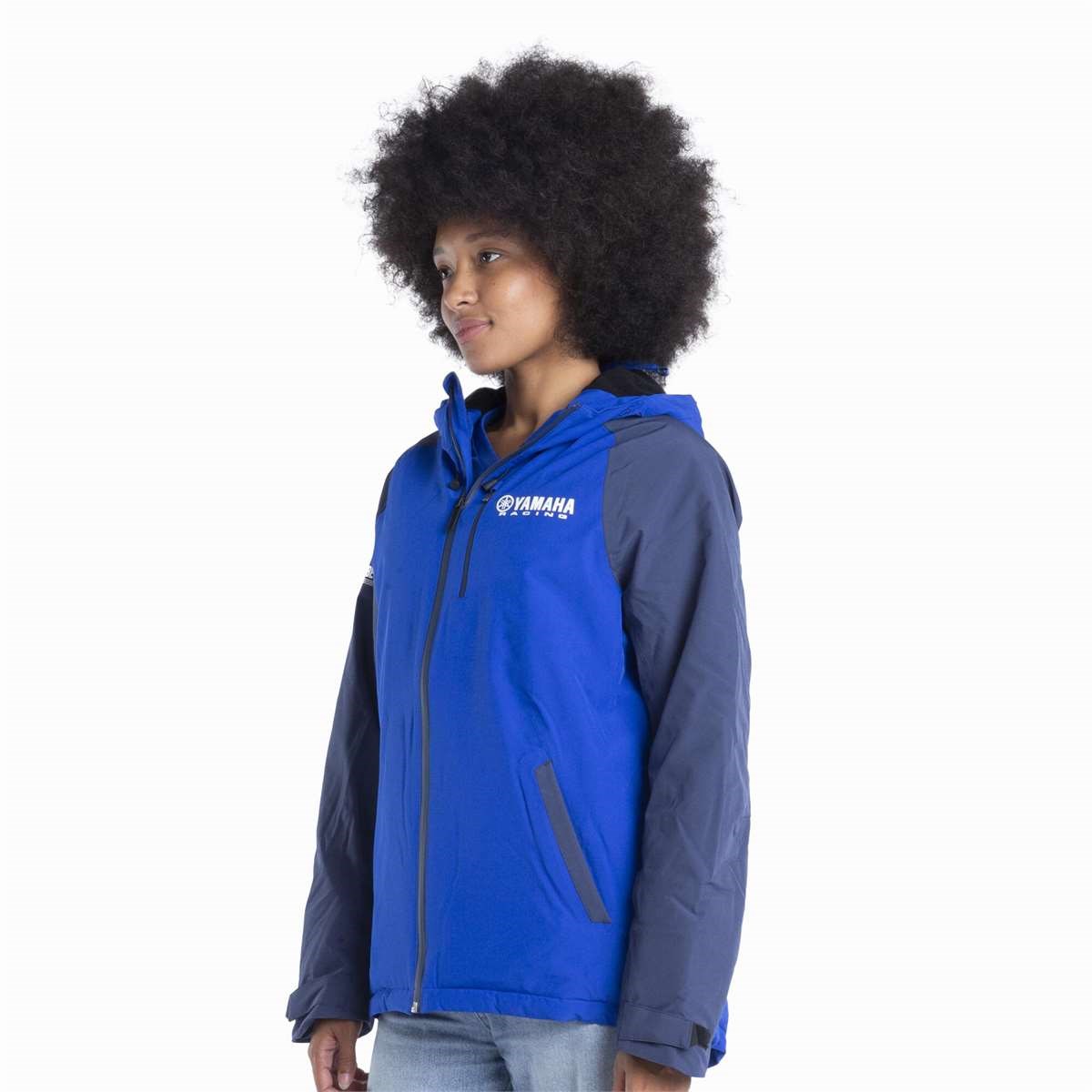 Die Paddock Blue Women's Waterproof-Jacke ist die Jacke, die du bei Regenwetter tragen möchtest. Sie bietet Funktionalität, Schutz vor den Elementen und ein angenehmes Tragegefühl. Die Jacke besteht aus einem Polyester-Elastan-Gemisch und ist durch ihr dichtes Gewebe und die versiegelten Nähte zu 100 % wasserdicht. Innenliegende Mesh-Einsätze sorgen für Belüftung und eine feste Kapuze bietet zusätzlichen Wetterschutz. Das Yamaha Branding auf der Brust, dem Ärmel und dem Rücken sorgt für den letzten Schliff.