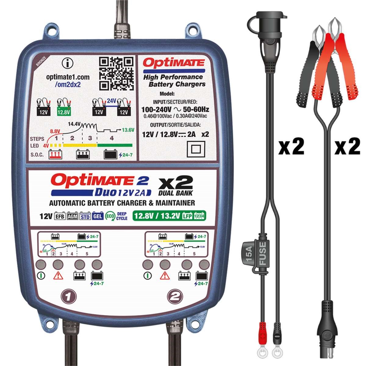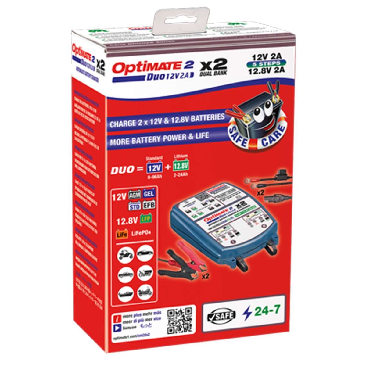 OptiMate 2 DUO DUAL bank passt sich automatisch an den angeschlossenen Batterietyp an. Garantiert gesunde Lithium- oder Blei-Säure-Batterien!