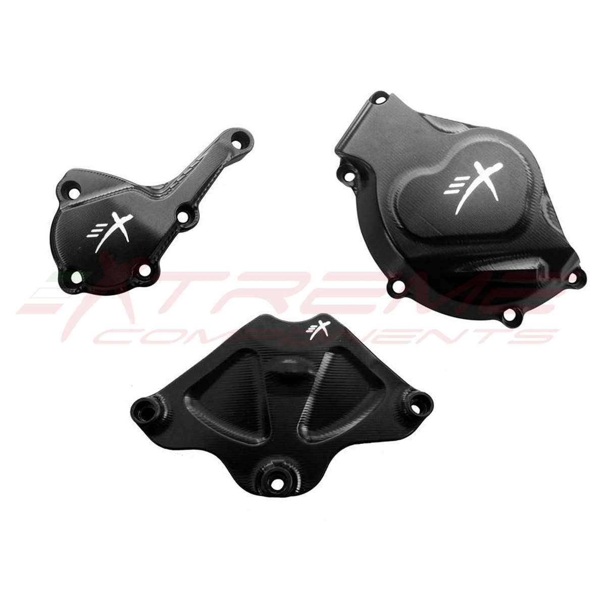 Racing Motordeckelschützer aus CNC gefrästem Ergal 7075 T6 Aluminium. 3-teiliges Set für Alternator, Kupplung und Pick-up.