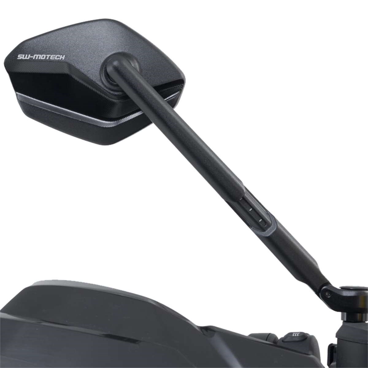 Die verstellbaren Spiegel im modernen und flachen Design fertigt SW-MOTECH aus schwarz eloxiertem Aluminium. Die Spiegelarme bestehen aus stufenlos verschiebbaren Elementen und sind jeweils um 30 Millimeter ausfahrbar. Die vielfältigen Einstellmöglichkeiten der Spiegel geben dem Piloten mehr Sicherheit durch besseren Überblick seines Umfeldes.