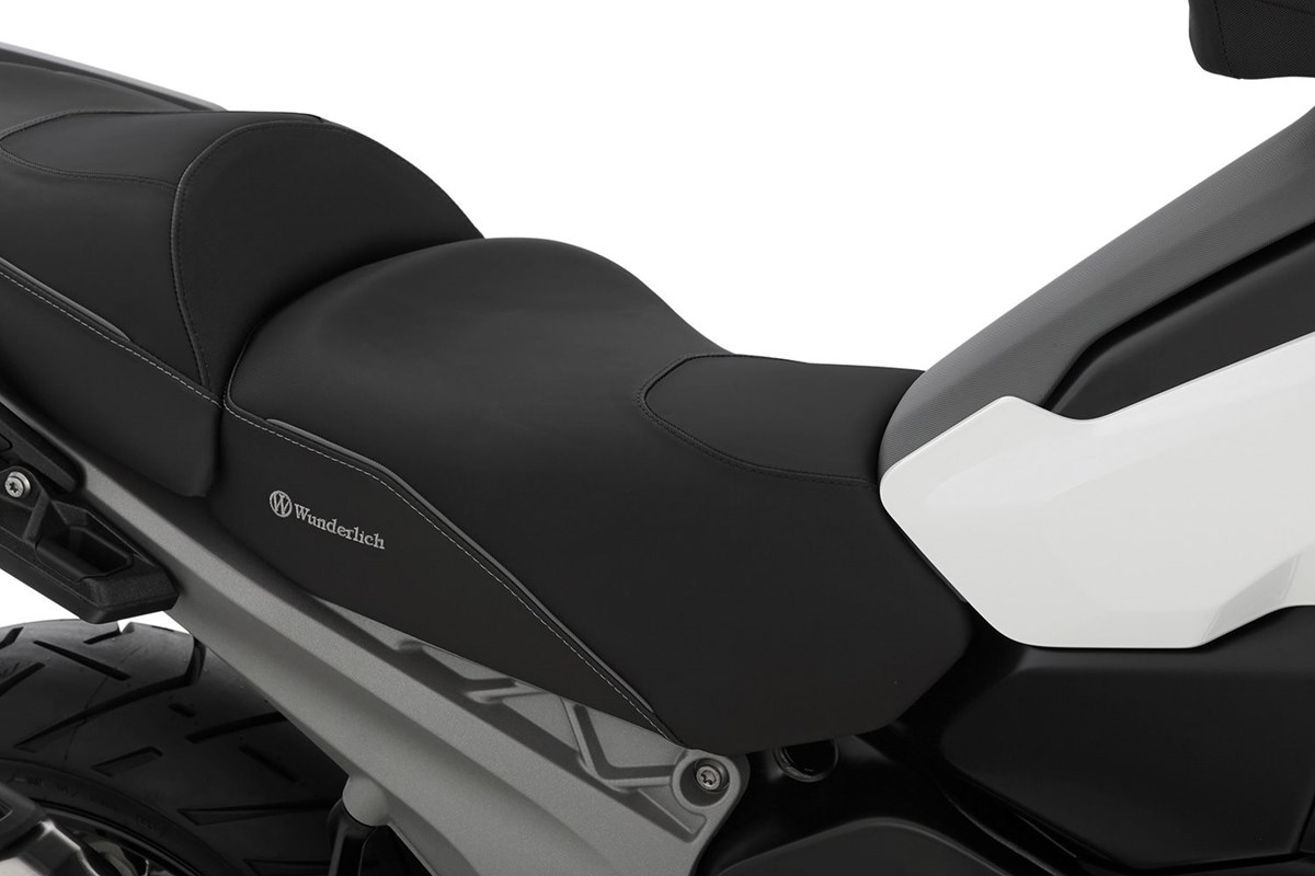 Das „Durchsitzen“ der Polsterung wird aufgrund der durchdachten Konstruktion zuverlässig vermieden und der Sitzdruck auf einer größeren Fläche gleichmäßig verteilt, was zu einer spürbar geringeren spezifischen Druckbelastung am Allerwertesten führt. Angenehm! Die ergonomische Form des Spezialschaums entlastet zudem das druckempfindliche Steißbein. Sie bieten perfekten Halt und aktive, sichere Kontrolle bei forcierter Fahrt, ganz besonders auch beim Bremsen: Wer kennt das nicht, wenn die Sozia beim Ankern plötzlich von hinten schiebt und man sich unvermittelt abstützen und gleichzeitig, in einer vielleicht brenzligen Lage, auch noch lenken muss. Mit Wunderlichs eigens entwickelter Stützkontur gehören diese Schreckmomente beim Bremsen der Vergangenheit an. Die innovative, ergonomische 3-D-Kontur sorgt auch dafür, dass Druckstellen an den Innenschenkeln beim Stehen an der Ampel, passé sind.