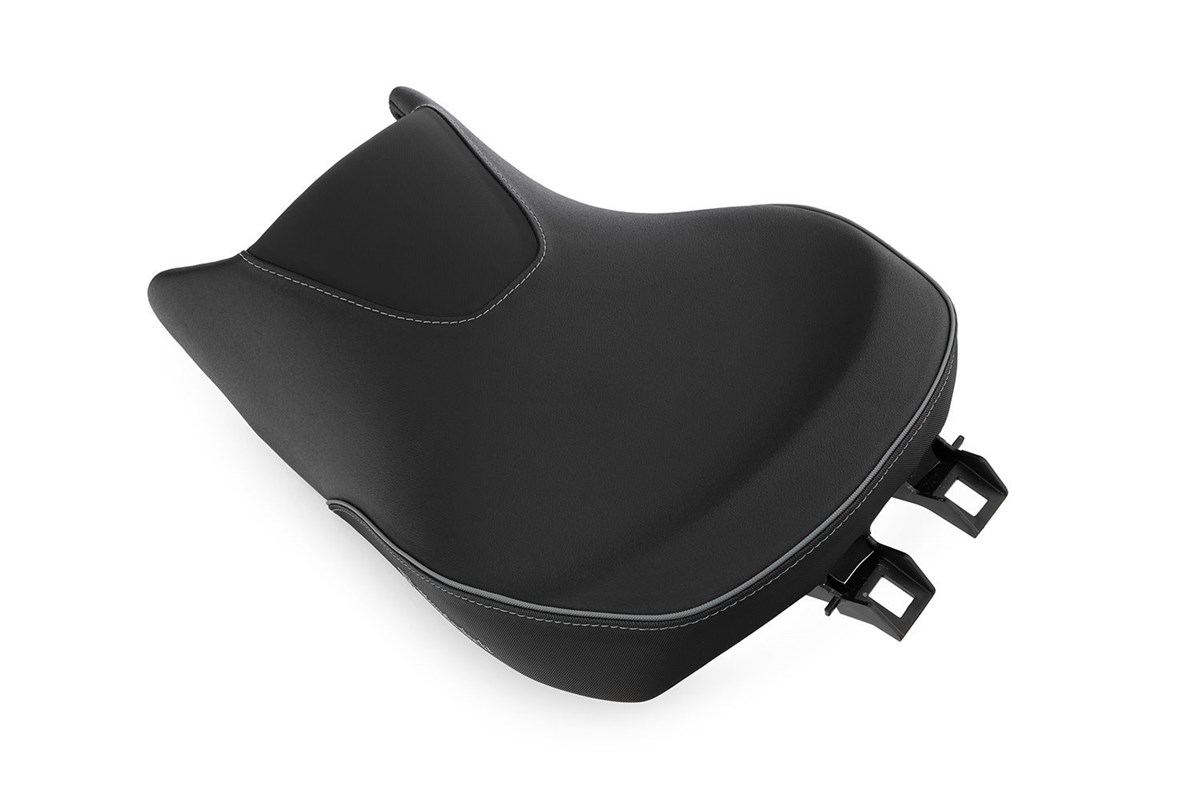 Wir fertigen unsere Fahrersitze mit einer charakteristischen, ergonomischen 3-D-Kontur, die den Fahrer mit seinem Motorrad eins werden lässt. Form und Neigung des aufwändig verarbeiteten Sitzbankkerns unterstützen die ergonomische vorteilhafte, natürliche Haltung des Beckens. So ins Motorrad integriert, fährt es sich einfach entspannt und damit aktiv. Und, kein Zweifel, entspanntes Sitzen schafft ein Plus an passiver Sicherheit. Diese AKTIVKOMFORT Sitzbank verfügt über die neueste ThermoPro Technologie, bei der die Temperatur der Sitzfläche im Hochsommer in praller Sonne um bis zu 25°C niedriger im Vergleich mit herkömmlichem Bezugsmaterial ausfällt. Passend dazu haben wir eine Beifahrersitzbank im Programm.