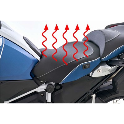 Wir fertigen unsere Fahrersitze mit einer charakteristischen, ergonomischen 3-D-Kontur, die den Fahrer mit seinem Motorrad eins werden lässt. Form und Neigung des aufwändig verarbeiteten Sitzbankkerns unterstützen die ergonomische vorteilhafte, natürliche Haltung des Beckens. So ins Motorrad integriert, fährt es sich einfach entspannt und damit aktiv. Und, kein Zweifel, entspanntes Sitzen schafft ein Plus an passiver Sicherheit. Diese AKTIVKOMFORT Sitzbank verfügt über die neueste ThermoPro Technologie, bei der die Temperatur der Sitzfläche im Hochsommer in praller Sonne um bis zu 25°C niedriger im Vergleich mit herkömmlichem Bezugsmaterial ausfällt. Passend dazu haben wir eine Beifahrersitzbank im Programm.