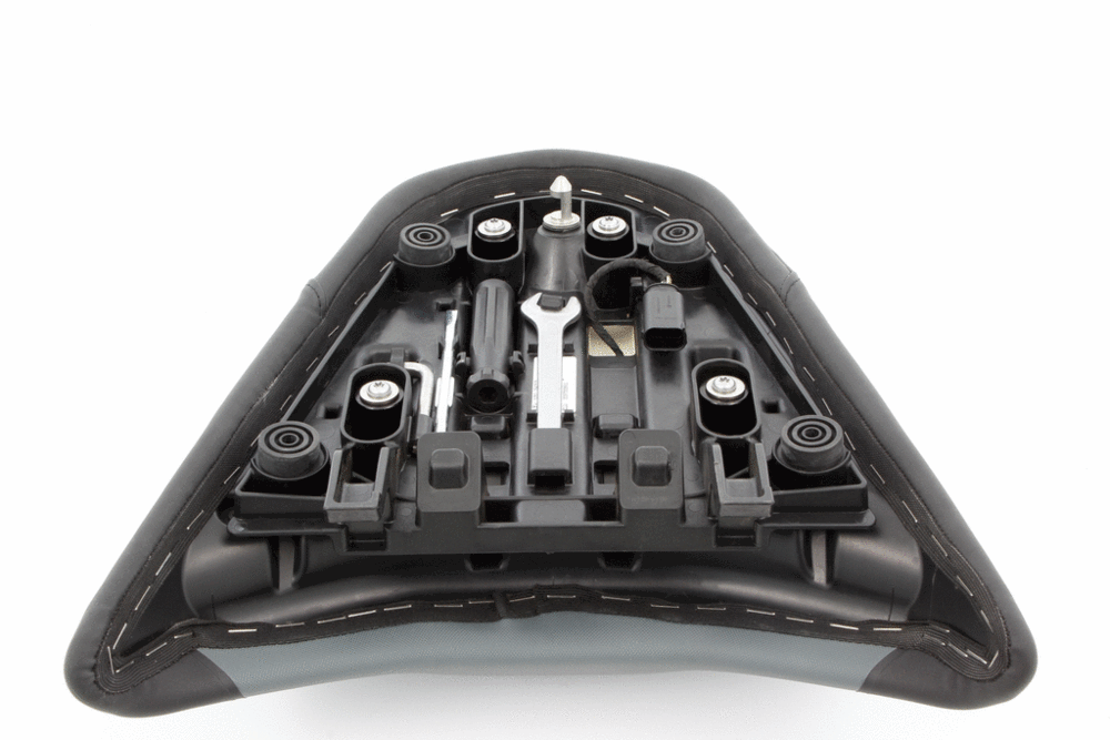 Bei der serienmäßigen Beifahrersitzbank der BMW R 1300 GS lässt sich das Sitzelement im eingebauten Zustand durch einen federbelasteten Mechanismus in die vordere oder die hintere Position einstellen. Da der Mechanismus technisch bedingt ein gewisses Spiel benötigt, sitzt die Beifahrersitzbank recht lose, was dem Sozius im Fahrbetrieb ein unsicheres Gefühl der Instabilität vermitteln kann. Durch unser Fixierkit wird die Sitzbank in der bevorzugten Stellung dauerhaft und spielfrei fixiert und bietet festen Halt und damit ein sicheres Fahrgefühl. Das Fixierkit besteht aus vier solide dimensionierten Kunststoffhülsen, welche die serienmäßigen Federn ersetzen.