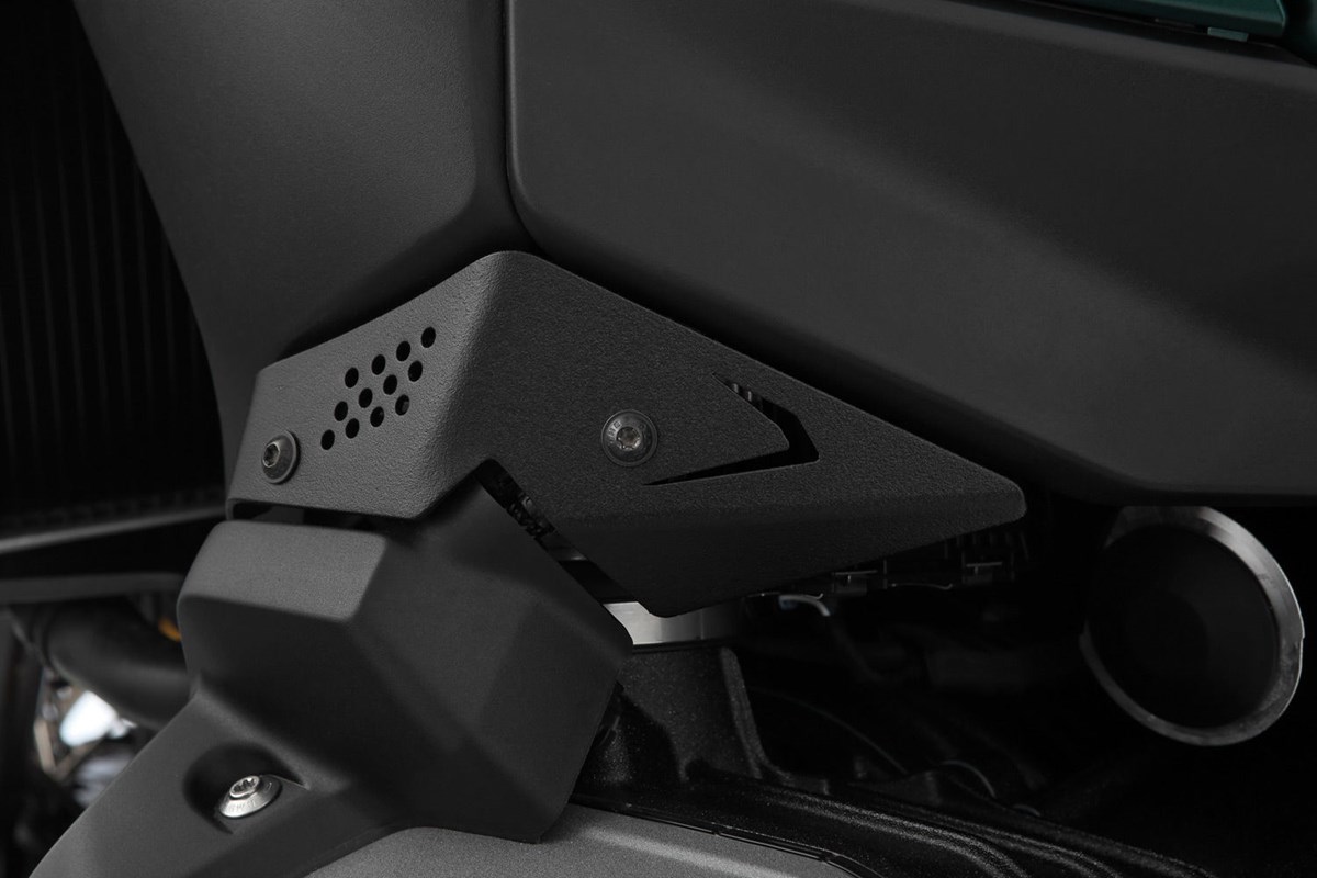 Die ansprechenden Schutzabdeckungen für den Bereich des rechten und linken Ansaugstutzens mit den Drosselklappen sowie den dahinter liegenden Steuereinheiten. Ihre Schutzwirkung umfasst den Schutz gegen mechanische Beschädigungen durch äußere Einwirkungen, den Schutz vor Verschmutzung der empfindlichen Technik und den Schutz gegen unerwünschte Manipulation durch Unbefugte. Durch die präzise angeordneten Kantungen, die Öffnungen und das Oberflächenfinish ist Designintegration perfekt gelungen: Es setzt einen hochwertigen Akzent und bleibt doch dezent. Die Montage gestaltet sich einfach.