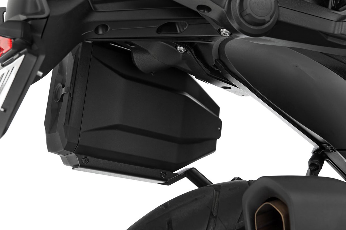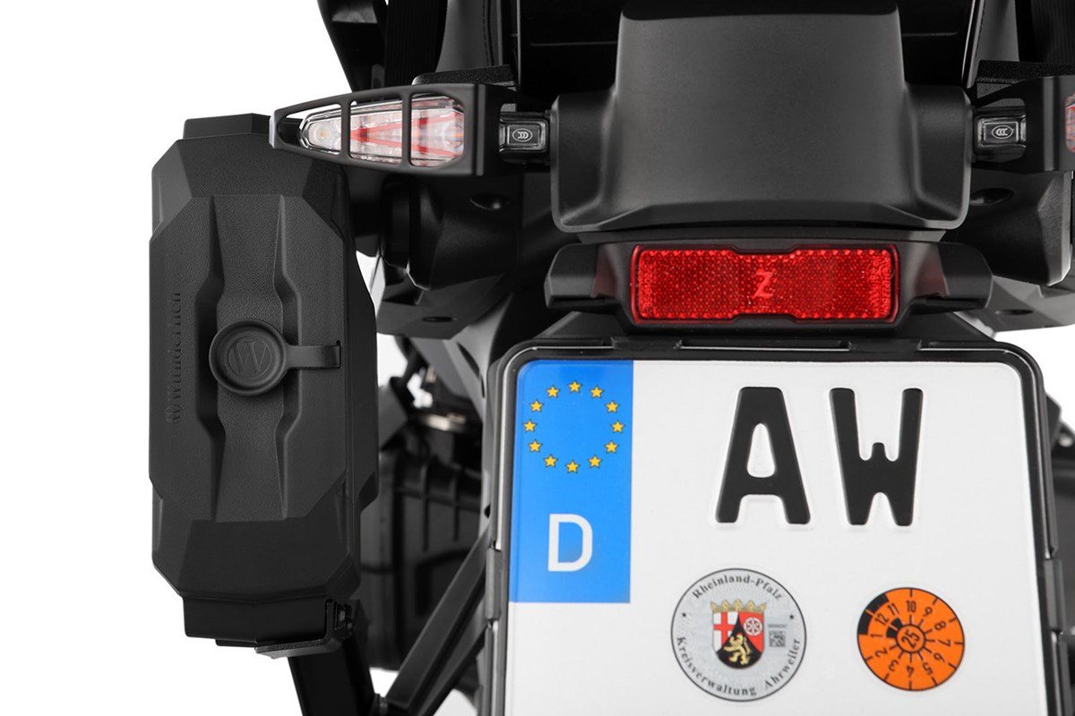 Unsere maßgeschneiderte Werkzeugbox bietet zusätzlichen Stauraum für allerlei hilfreiche Kleinigkeiten - nicht nur für Werkzeug. Sie eignet sich ideal für die Spritztour oder das sportliche Adventure, wenn die großen Koffer ohnehin verzichtbar sind. Die funktionale, robuste Box ist mit vier soliden Gewindeeinsätzen versehen und wird mit zwei dezenten Haltern auf der linken Fahrzeugseite sicher montiert. Der obere Halter wird an der Basis der Vario Kofferaufnahme an bereits vorhandenen Anschlusspunkten verschraubt. Der rückseitige Deckel ist gegen Verlust gesichert. Die aus hochwertigem Kunststoff bestehende Box ist wasserdicht und extrem robust. Wir liefern sie mit dem modellspezifisch passenden Halter.