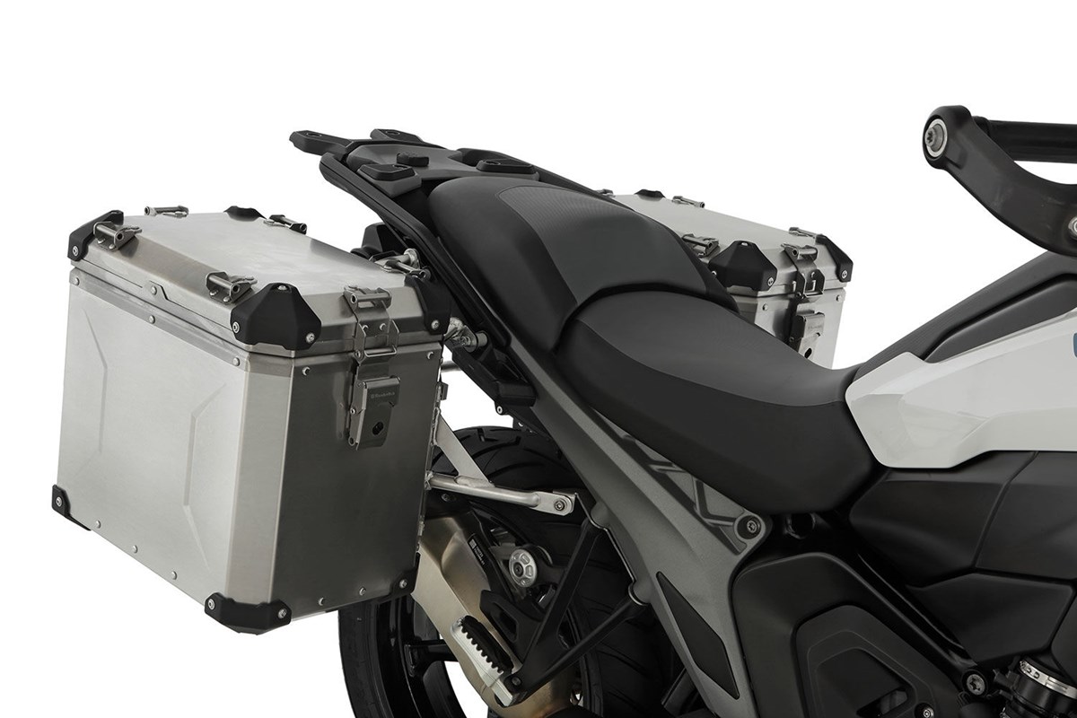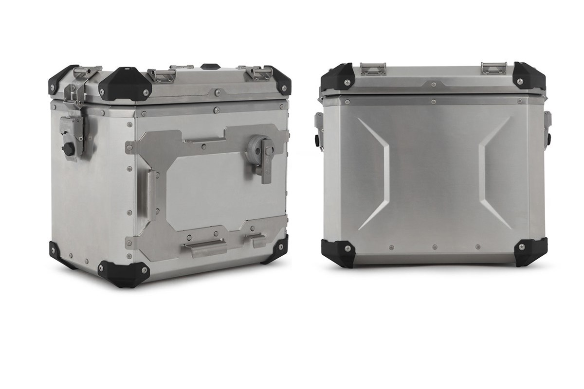 Egal ob für den Trip über die Autobahn, zum Nordkap oder durch die Wüste: Diese stabilen, leichten und dabei stilsicheren Aluminium-Koffer EXTREME gehen mit Ihnen durch dick und dünn! Das Anbringen am Träger ist dank des Schnellverschlusssystems unkompliziert. Sie sind durch ihr spezielles Dichtsystem absolut staub- und wasserdicht. Durch die konsequente Verwendung ausschließlich hochwertiger Werkstoffe ist die Langlebigkeit unseres Gepäcksystems „EXTREME“ gewährleistet. Dazu trägt das verarbeitete 1,5 mm-Aluminiumblech mit stabilisierenden Sicken (gewichtsoptimiert, dennoch robust), die Edelstahlbeschläge, der austauschbaren Rundumschutz an allen Ecken sowie die Schutzkappen für die Schlösser bei.