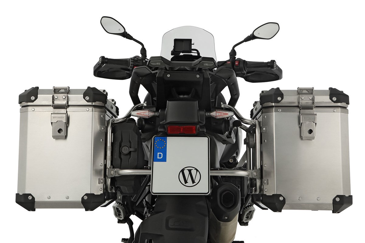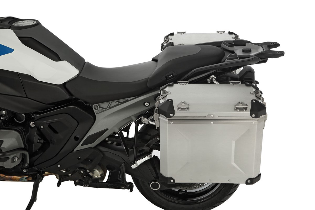 Dank der zusätzlichen Verzurrösen auf dem Deckel können weitere Gepäckstücke -beispielsweise unsere Rack Pack-Taschen- sicher aufgeschnallt werden. Die Kofferdeckel sind innen serienmäßig mit praktischen Gepäcknetzen ausgestattet, für alles, was unterwegs unmittelbar griffbereit sein soll: Regenzeug, Werkzeug oder die Verbandstasche.