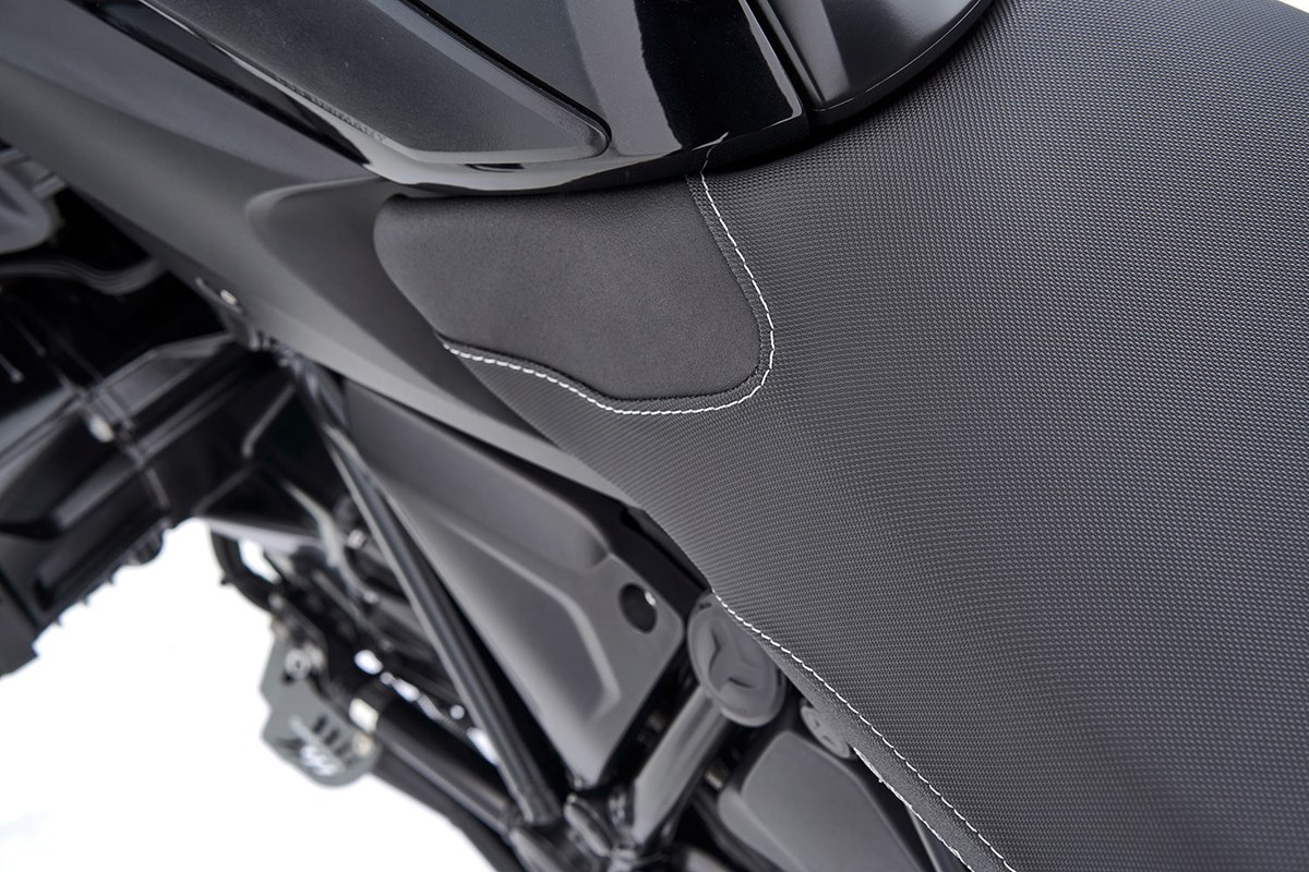 Sie bieten perfekten Halt und aktive, sichere Kontrolle bei forcierter Fahrt, ganz besonders auch beim Bremsen: Wer kennt das nicht, wenn die Sozia beim Ankern plötzlich von hinten schiebt und man sich unvermittelt abstützen und gleichzeitig, in einer vielleicht brenzligen Lage, auch noch lenken muss. Mit Wunderlichs eigens entwickelter Stützkontur gehören diese Schreckmomente beim Bremsen der Vergangenheit an. Die innovative, ergonomische 3-D-Kontur sorgt auch dafür, dass Druckstellen an den Innenschenkeln beim Stehen an der Ampel, passé sind.