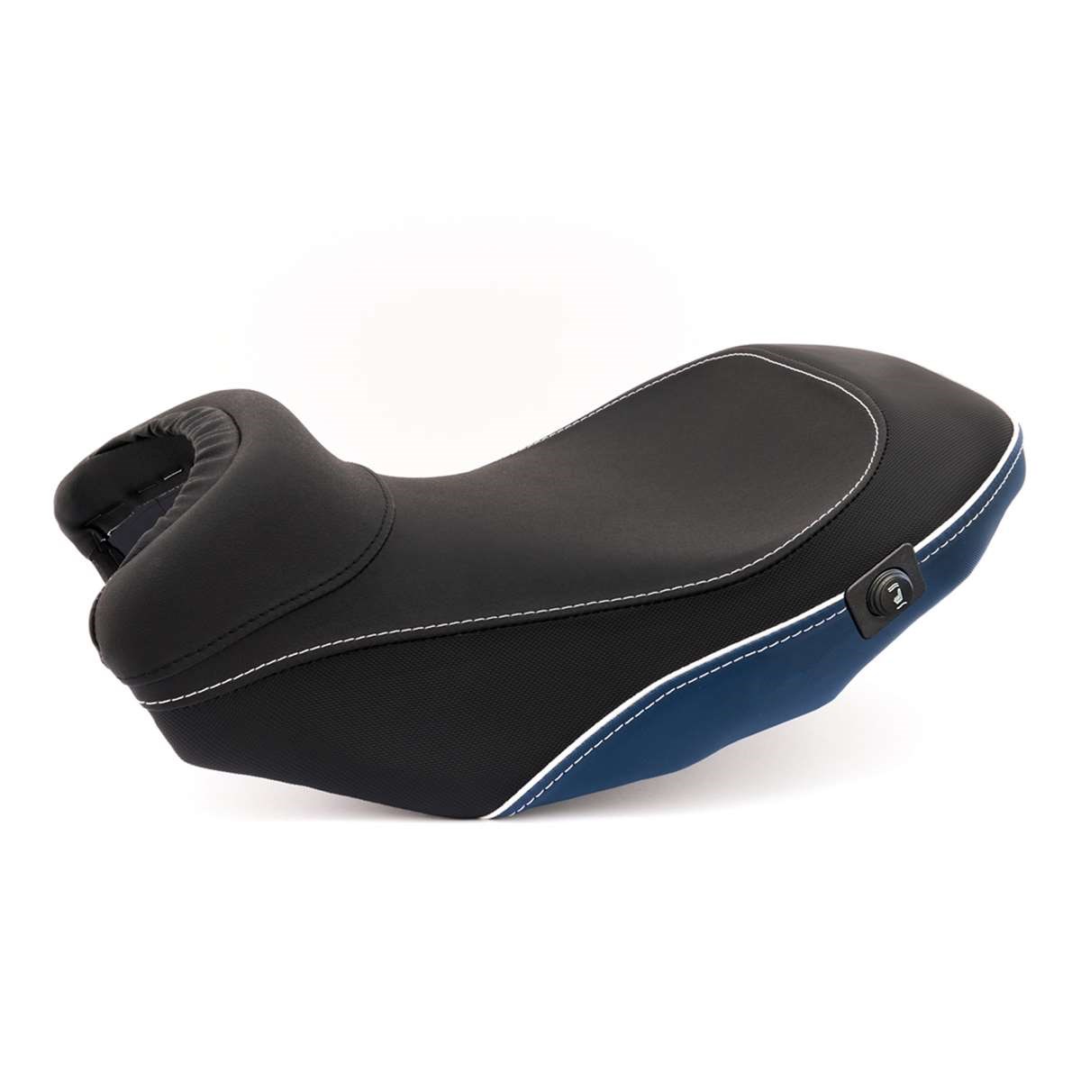 Auch diese heizbare AKTIVKOMFORT Sitzbank fertigen wir mit einer charakteristischen, ergonomischen 3D-Kontur, die den Fahrer mit seinem BMW-Motorrad eins werden lässt. Sie ist für Motorräder bestimmt, die ohne werksseitige Sitzheizung ausgeliefert wurden. Die Steuerung der Heizleistung des hochwertigen Carbon-Heizelements erfolgt komfortabel und sicher mit einem zweistufigen Schalter, der an der linken Sitzflanke positioniert ist – so bleibt die Gashand, wo sie hingehört: Am Lenker. Form und Neigung des aufwändig verarbeiteten Sitzbankkerns, in den das Sitzheizungselement aus Carbon integriert ist, unterstützen die ergonomisch vorteilhafte, natürliche Haltung des Beckens. So ins Motorrad integriert, fährt es sich einfach entspannt und damit aktiv. Und, kein Zweifel, entspanntes Sitzen schafft ein Plus an passiver Sicherheit. Bei unseren ThermoPro Fahrer- und Beifahrersitzbänken liegt die Temperatur der Sitzfläche im Hochsommer in praller Sonne um bis zu 25°C niedriger im Vergleich mit herkömmlichem Bezugsmaterial. Zum Abnehmen der Sitzbank kann die Stromversorgung mit einer Schnellkupplung getrennt werden.