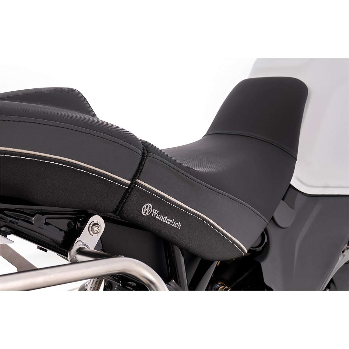 Das „Durchsitzen“ der Polsterung wird aufgrund der durchdachten Konstruktion zuverlässig vermieden und der Sitzdruck auf einer größeren Fläche gleichmäßig verteilt, was zu einer spürbar geringeren spezifischen Druckbelastung am Allerwertesten führt. Angenehm! Die ergonomische Form des Spezialschaums entlastet zudem das druckempfindliche Steißbein. Sie bieten perfekten Halt und aktive, sichere Kontrolle bei forcierter Fahrt, ganz besonders auch beim Bremsen: Wer kennt das nicht, wenn die Sozia beim Ankern plötzlich von hinten schiebt und man sich unvermittelt abstützen und gleichzeitig, in einer vielleicht brenzligen Lage, auch noch lenken muss. Mit Wunderlichs eigens entwickelter Stützkontur gehören diese Schreckmomente beim Bremsen der Vergangenheit an. Die innovative, ergonomische 3-D-Kontur sorgt auch dafür, dass Druckstellen an den Innenschenkeln beim Stehen an der Ampel, passé sind.