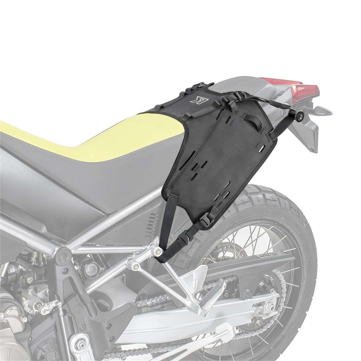 Passt perfekt zur APRILIA TUAREG 660 mit einer individuellen Form und spezifischen Montageteilen. Die OS-BASE ist ein „Über-den-Sitz-Gurt“ zur Montage von weichen OS-6-, OS-12- oder OS-18-ADVENTURE-Packstaschen , ohne dass Metallrahmen erforderlich sind. Dieses System bietet eine äußerst robuste, leichte Tragelösung, ohne dass Änderungen an der Karosserie erforderlich sind. Das passende Hardware bietet die Flexibilität, je nach Fahrtyp ein Ein-, Zwei- oder Dreierpack-Setup zu montieren. Die auf die richtige Länge eingestellten Riemen ermöglichen eine schnelle und einfache Montage und die individuelle Form sorgt für einen festen, sicheren Sitz mit viel Abstand zum Auspuff. Die Montage dauert weniger als eine Minute und die Demontage nur wenige Sekunden.