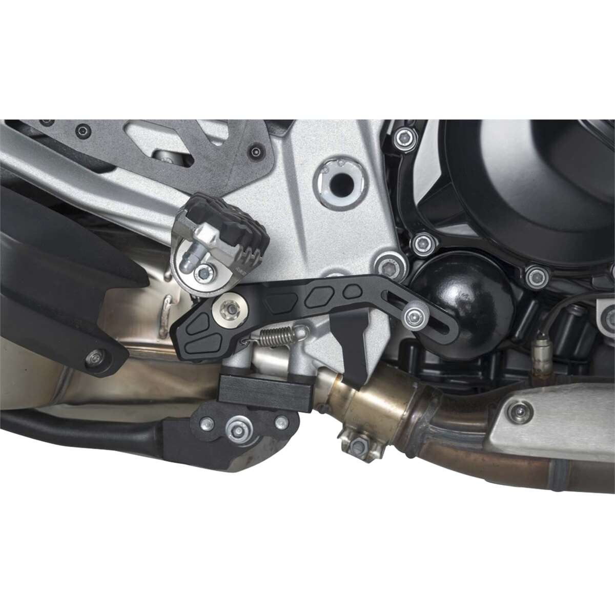 Der verstellbare Fußbremshebel aus hochwertig gefrästem Aluminium mit HART-COAT® Beschichtung ermöglicht eine bessere Bedienbarkeit und Dosierung der Bremse. Der SW-MOTECH Fußbremshebel ist auf einer Länge von 5 cm einstellbar, dadurch passt er zu jedem Fuß und zu jedem Fahrstil. Die Rändelungen des Auftritts erhöhen die Griffigkeit und sorgen für verbesserte Stabilität beim sportlichen Fahren und längeren Touren. Mit dem separat erhältlichen Adventure-Auftritt verbesserst du das Handling der Fußbremse insbesondere beim Offroad-Fahren im Stehen.