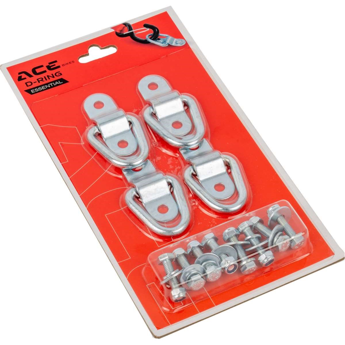 Das Acebikes 4-Pack D-Ring Essential Befestigungsset kann eingeklappt werden, wenn es nicht benötigt wird. Mittels 2 vorgebohrtgen Löchern können Sie dieses Set kindderleicht und schnell montieren. Beide Teile sind verzinkt um somit Schäden durch Rost oder Korrosion zu vermeiden.