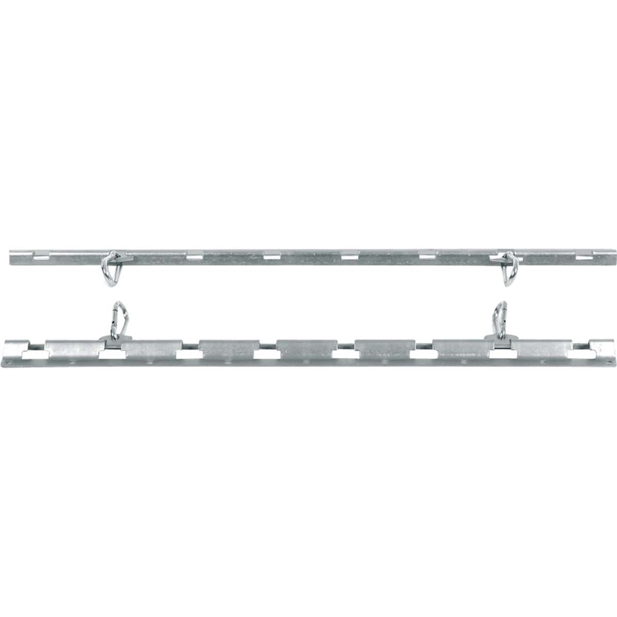 Die stabilen und soliden Befestigungsschienen sind aus galvanisiertem Stahl hergestellt. Die Zurrgutschienen werden auf dem Boden eines Kleinlasters oder Transporters (sowohl auf der linken als auch der rechten Seite) verschraubt. So können Sie anschliessend die Karabiner und die Befestigungsgurte sicher, und in jeder von Ihnen gewünschten Position, befestigen. Das Transport Zurrschienen Set wird natürlich inklusive der, zur Befestigung des Bikes benötigten Karabiner und Schlösser, geliefert.