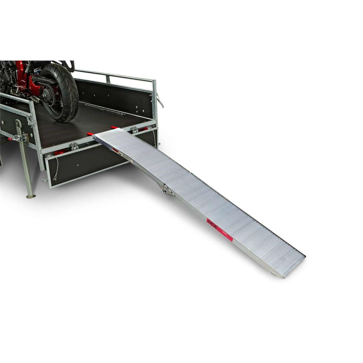 Egal ob Sie Ihr Bike auf einen Anhänger, Kleinlastwagen oder Transporter verladen wollen, mit der Acebikes Auffahrschiene haben Sie die perfekte Rampe zur Hand. Die Verladerampe ist für Motorräder mit einem Gewicht von bis zu 340 kg geeignet. Aufgrund der langlebigen, schützenden Kunststoffteile wird Ihr Fahrzeug weder zerkratzt noch beschädigt. Die Auffahrrampe ist mit einem haltbaren, stabilen Scharnier ausgestattet. So wird eine hohe Langlebigkeit garantiert. Trotz der stabilen Machart ist die Motorradrampe ein Leichtgewicht, denn sie wiegt nur 7,3 kg. Sie können die Auffahrrampe einfach zusammenklappen und diese dann platzsparend lagern.