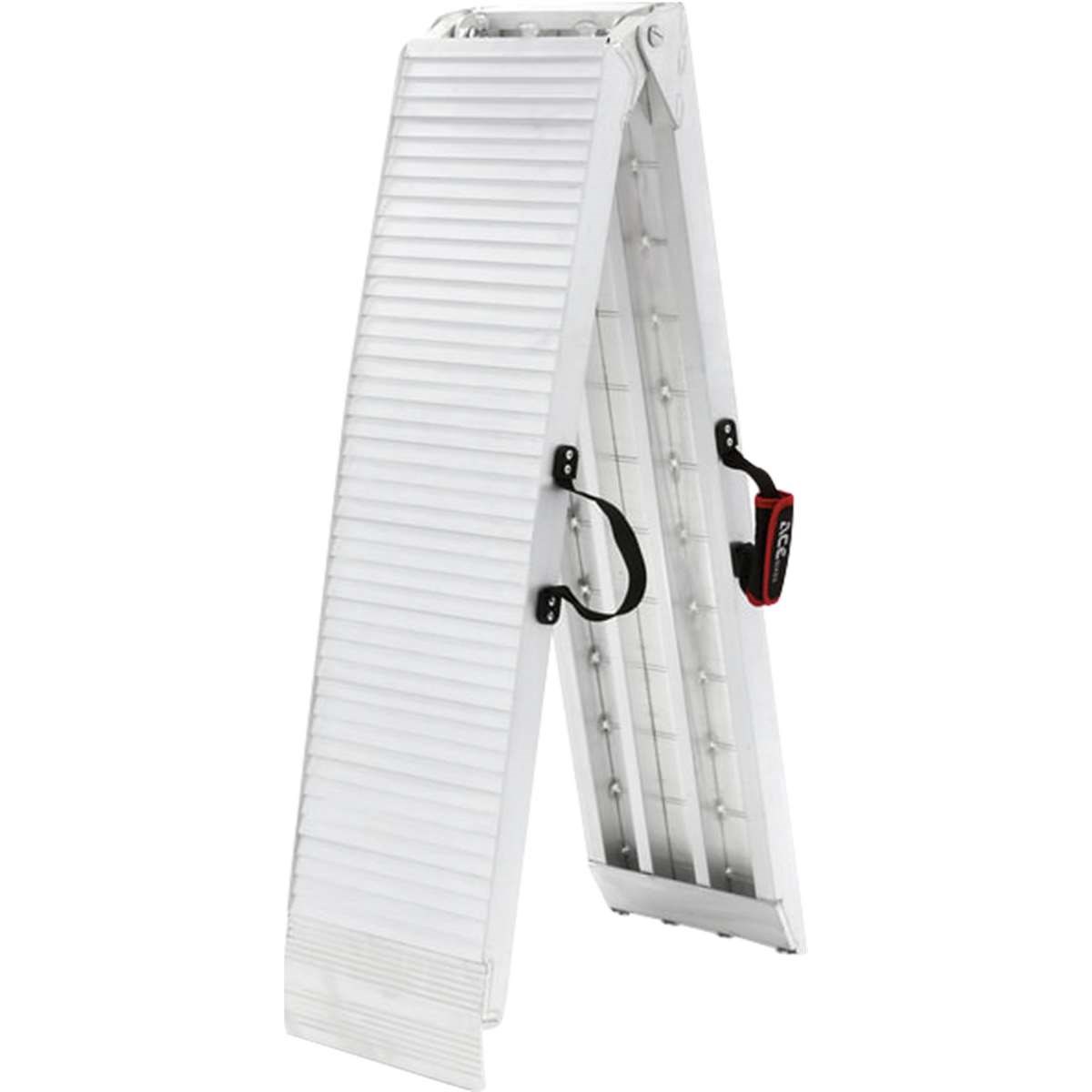 Dank einer geriffelten Oberfläche und den zusätzlichen Sicherungsgurten können Sie so Ihr Motorrad bequem und vor allem sicher auf den Transporter laden, ohne dass Sie oder Ihr Bike Gefahr laufen, dass der Ladevorgang einen unschönen Verlauf nimmt. Dank der leichtgewichtigen Konstruktion ist die Auffahrrampe einfach zu bedienen und mitzuführen. Mit Hilfe der 2 praktischen und stabilen Handgriffe können Sie die Rampe im zusammengeklappten Zustand bequem transportieren und verstauen.