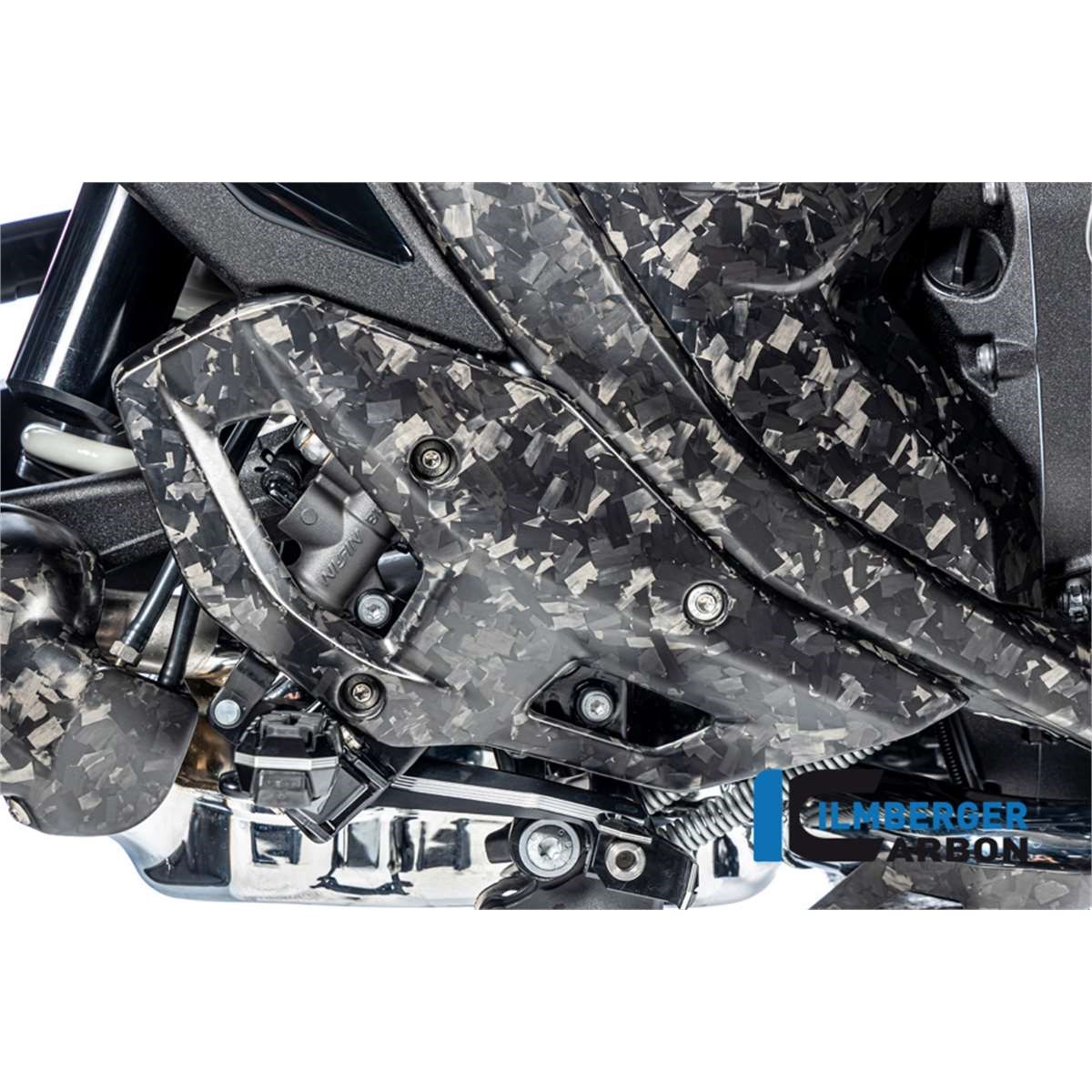 Das Carbonteil ist bei jedem Teil ein Unikat und erinnert an Marmor. Das BDC wird bei Ilmberger ebenfalls in Handarbeit laminiert, härtet in mehreren Stufen im Autoklaven aus und überzeugt nicht nur durch seine spannende Optik, sondern auch durch seine technischen Eigenschaften. Die verschiedenen Fasern zerstreuen das einstrahlende Licht und erzeugen eine bis dahin ungekannte Reflektion.