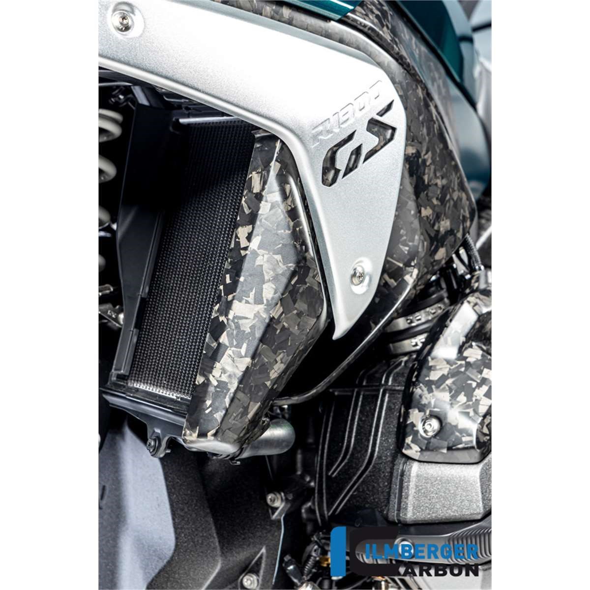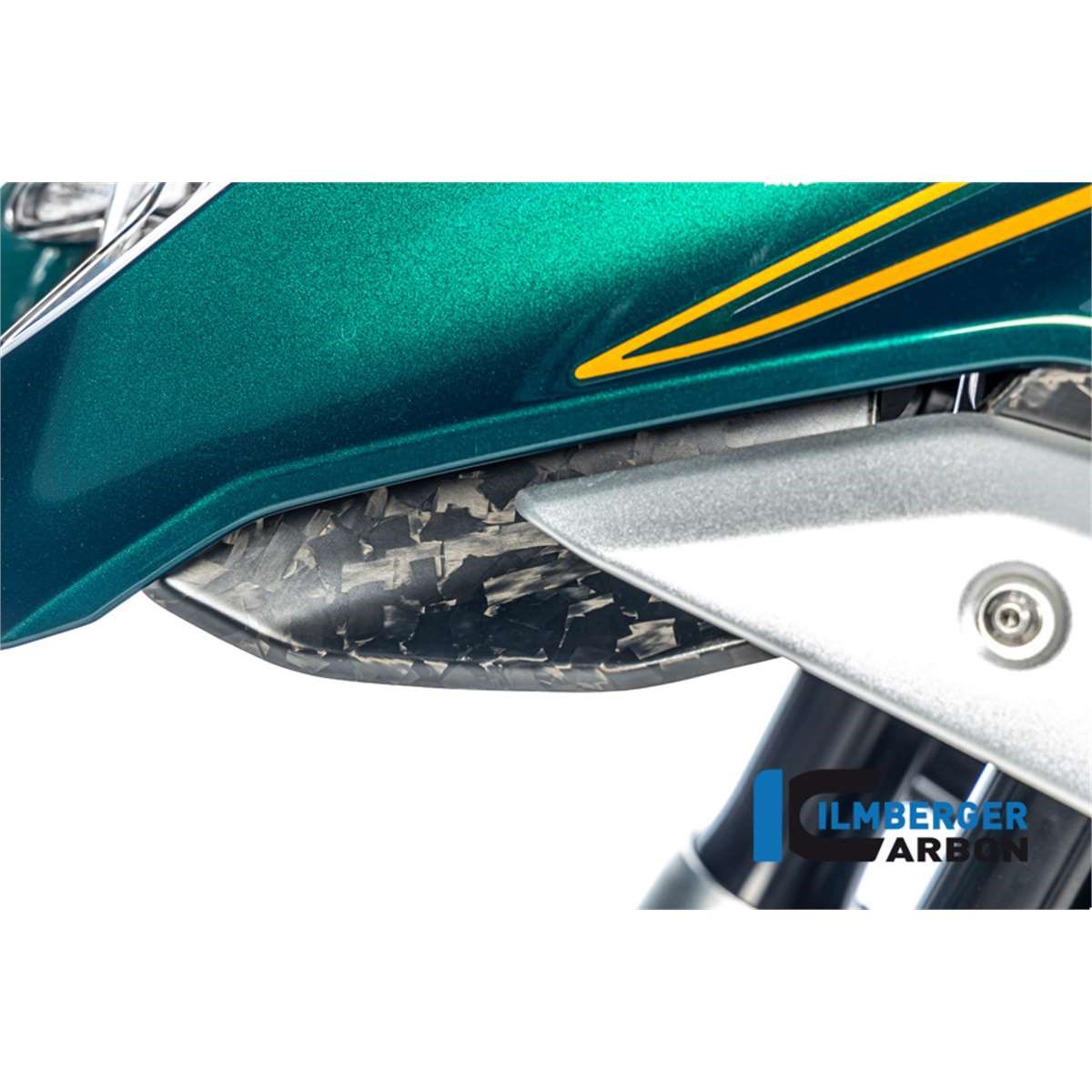 Als Material kommt hier das innovative BDC zum Einsatz und gibt dem Bauteil einen völlig neuen und individuellen Touch. Die Oberfläche des BDC Teils ist bei jedem Teil ein Unikat und erinnert an Marmor. Das BDC wird bei Ilmberger ebenfalls in Handarbeit laminiert und härtet mehreren Stufen im Autoklaven aus. Das Material überzeugt nicht nur durch seine spannende Optik, sondern auch durch seine technischen Eigenschaften. Die verschiedenen Fasern zerstreuen das einstrahlende Licht und erzeugen eine bis dahin ungekannte Reflektion.