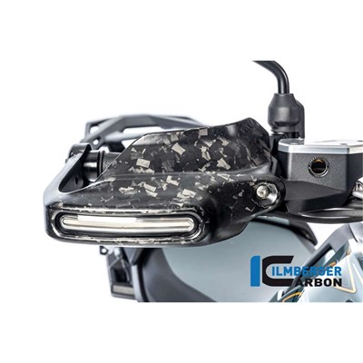 Die Ilmberger Carbon Handprotektoren für die BMW R 1300 GS in großer Version verleihen Ihrem Motorrad nicht nur einen sportlichen Look, sondern bieten auch optimalen Schutz für Ihre Hände. Dank der integrierten Blinker fügen sich diese Protektoren nahtlos in das Erscheinungsbild Ihrer BMW ein und sorgen für eine elegante, luxuriöse Optik. Die hochwertige Carbon-Verarbeitung gewährleistet Stabilität und Leichtigkeit zugleich. Schützen Sie Ihre Hände auf stilvolle Weise mit den Ilmberger Carbon Handprotektoren in großer Version für die BMW R 1300 GS.