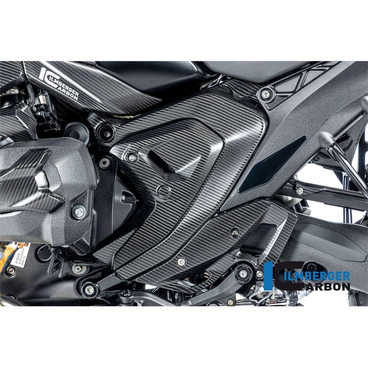 Die Carbon Rahmenabdeckung für die BMW R 1300 GS verleiht Ihrem Motorrad nicht nur einen einzigartigen, sportlichen Look, sondern schützt gleichzeitig den Rahmen vor Beschädigungen. Durch die Verwendung von Carbon wird eine leichte und zugleich robuste Bauweise ermöglicht. Besonders hervorzuheben ist die Tatsache, dass Carbon die Hitze nicht so schnell leitet wie Metall. Dies führt zu einer niedrigeren Oberflächentemperatur am Rahmen und somit zu einem erhöhten Fahrkomfort am Bein des Fahrers.