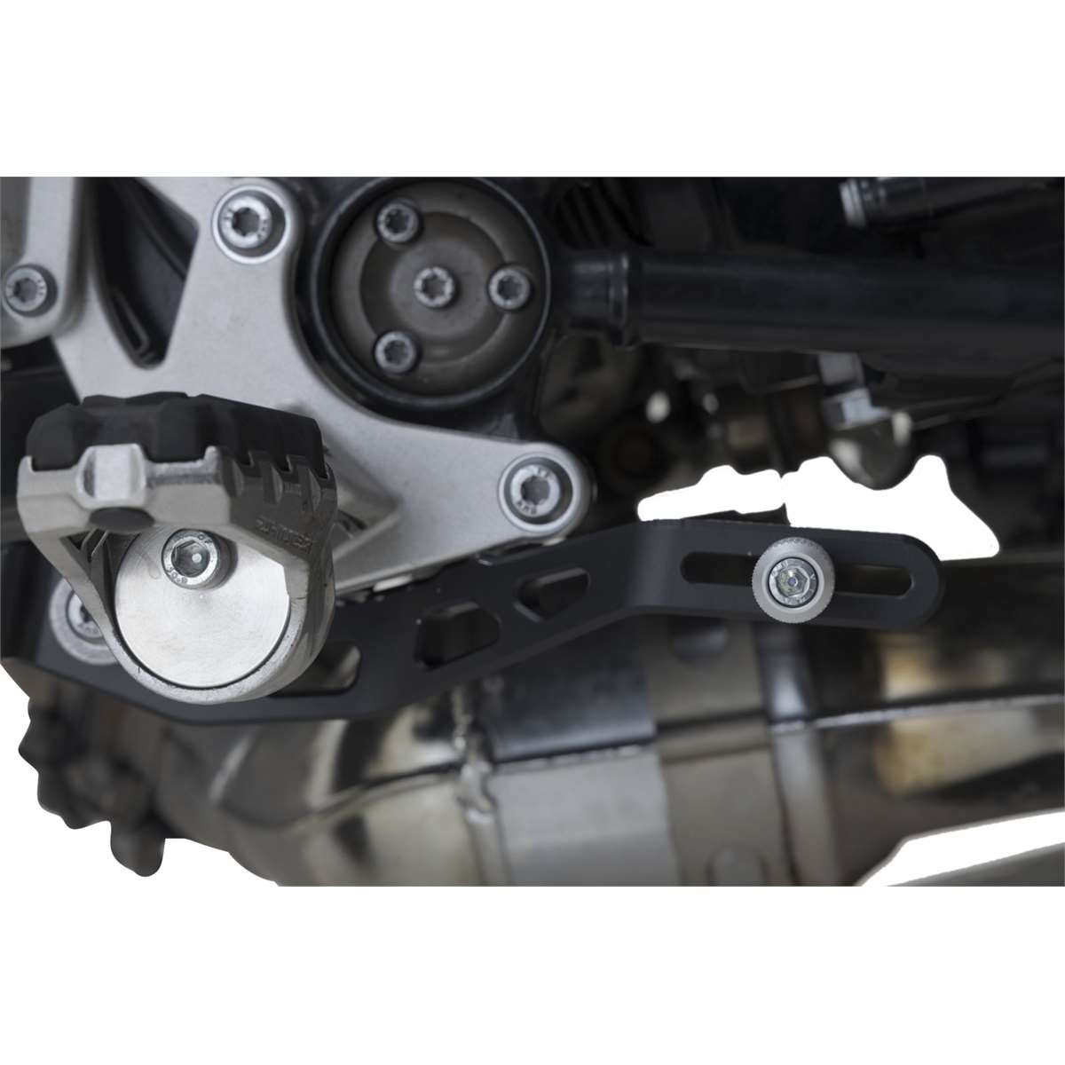 Der verstellbare Fussbremshebel aus hochwertig gefrästem Aluminium mit HART-COAT® Beschichtung ermöglicht eine bessere Bedienbarkeit und Dosierung der Bremse. Der SW-MOTECH Fussbremshebel ist auf einer Länge von 5 cm einstellbar, dadurch passt er zu jedem Fuss und zu jedem Fahrstil. Die Rändelungen des Auftritts erhöhen die Griffigkeit und sorgen für verbesserte Stabilität beim sportlichen Fahren und längeren Touren. Mit dem separat erhältlichen Adventure-Auftritt verbesserst du das Handling der Fussbremse insbesondere beim Offroad-Fahren im Stehen.