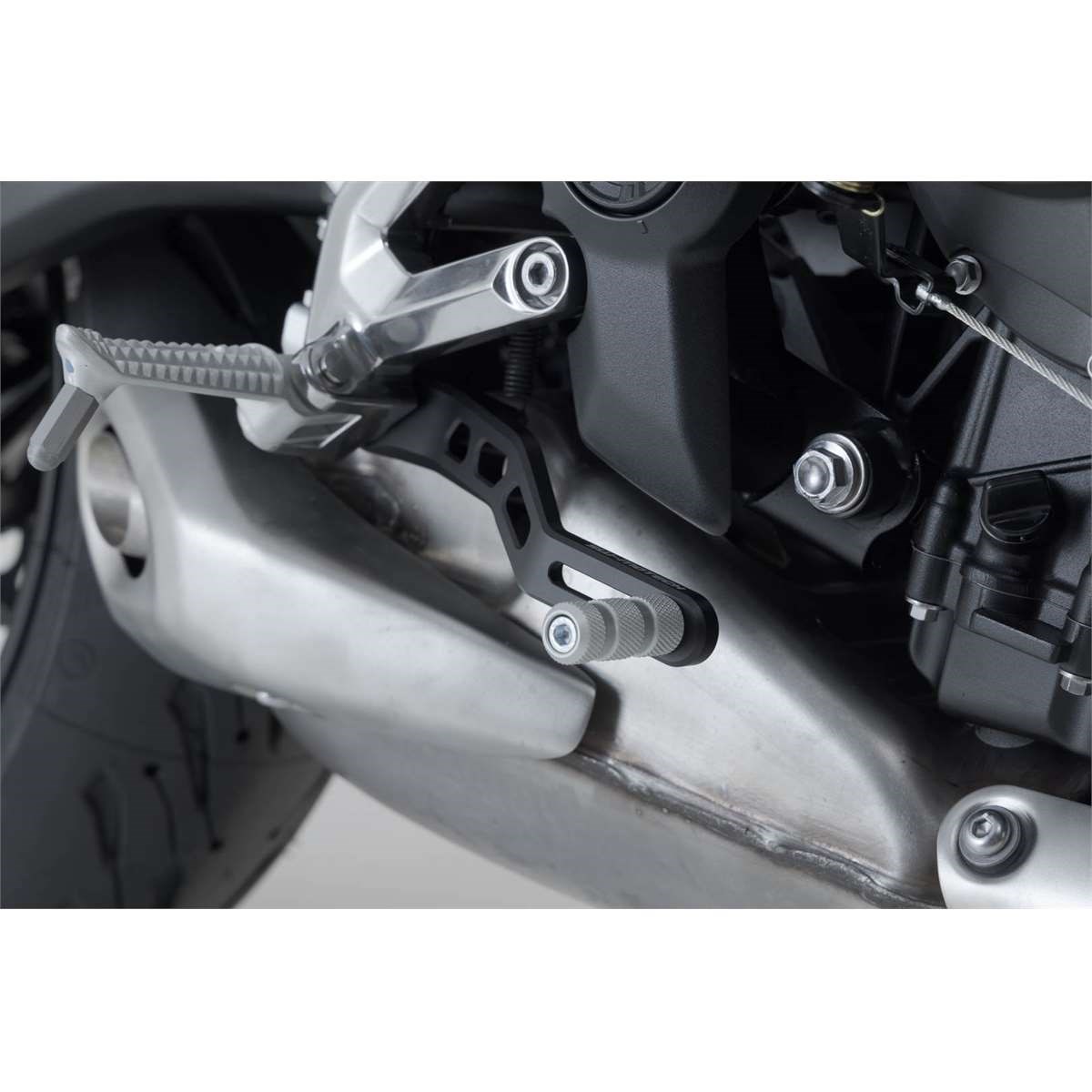 Der verstellbare Fussbremshebel aus hochwertig gefrästem Aluminium mit HART-COAT® Beschichtung ermöglicht eine bessere Bedienbarkeit und Dosierung der Bremse. Der SW-MOTECH Fussbremshebel ist auf einer Länge von 5 cm einstellbar, dadurch passt er zu jedem Fuss und zu jedem Fahrstil. Die Rändelungen des Auftritts erhöhen die Griffigkeit und sorgen für verbesserte Stabilität beim sportlichen Fahren und längeren Touren. Mit dem separat erhältlichen Adventure-Auftritt verbesserst du das Handling der Fussbremse insbesondere beim Offroad-Fahren im Stehen.