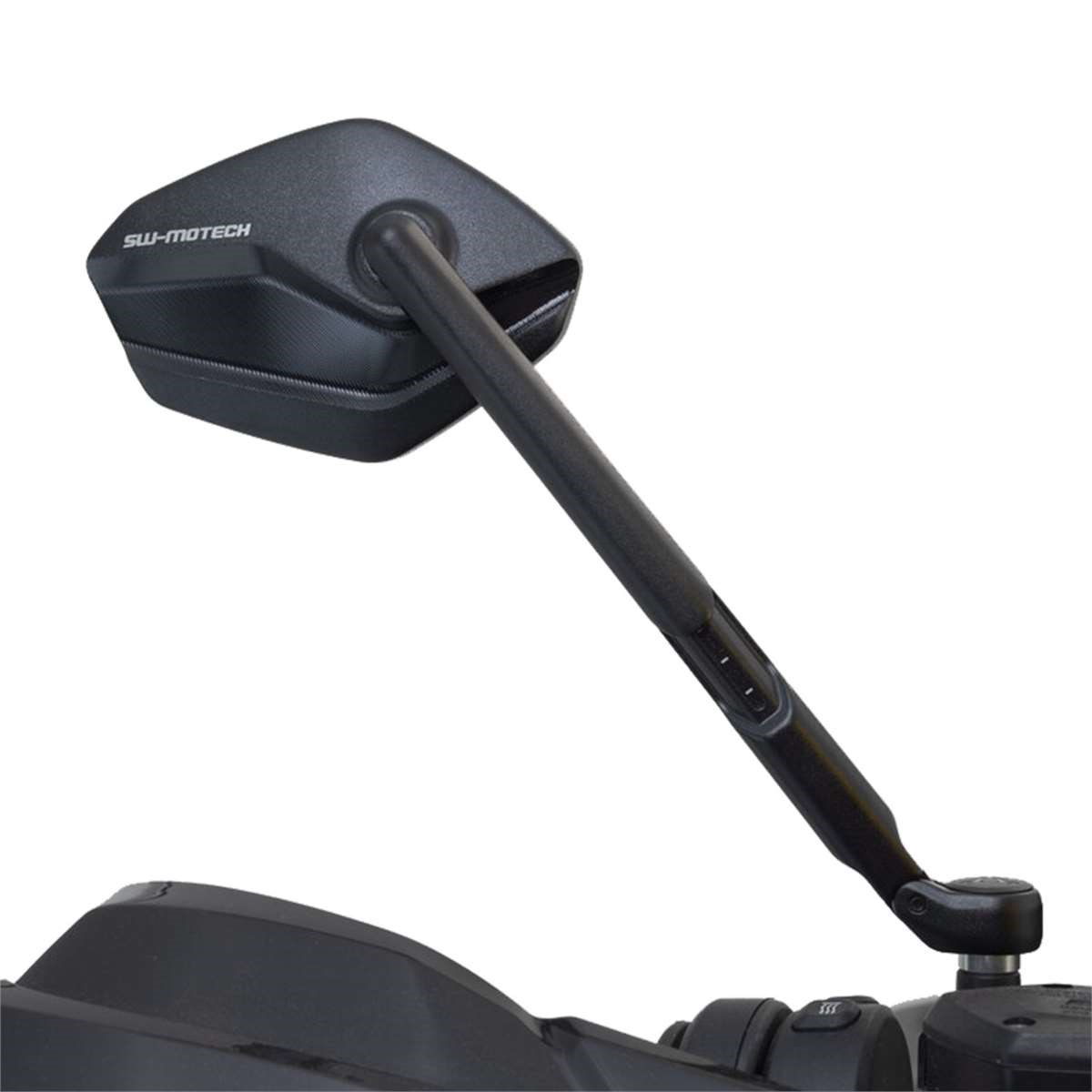 Die verstellbaren Spiegel im modernen und flachen Design fertigt SW-MOTECH aus schwarz eloxiertem Aluminium. Die Spiegelarme bestehen aus stufenlos verschiebbaren Elementen und sind jeweils um 30 Millimeter ausfahrbar. Die vielfältigen Einstellmöglichkeiten der Spiegel geben dem Piloten mehr Sicherheit durch besseren Überblick seines Umfeldes.