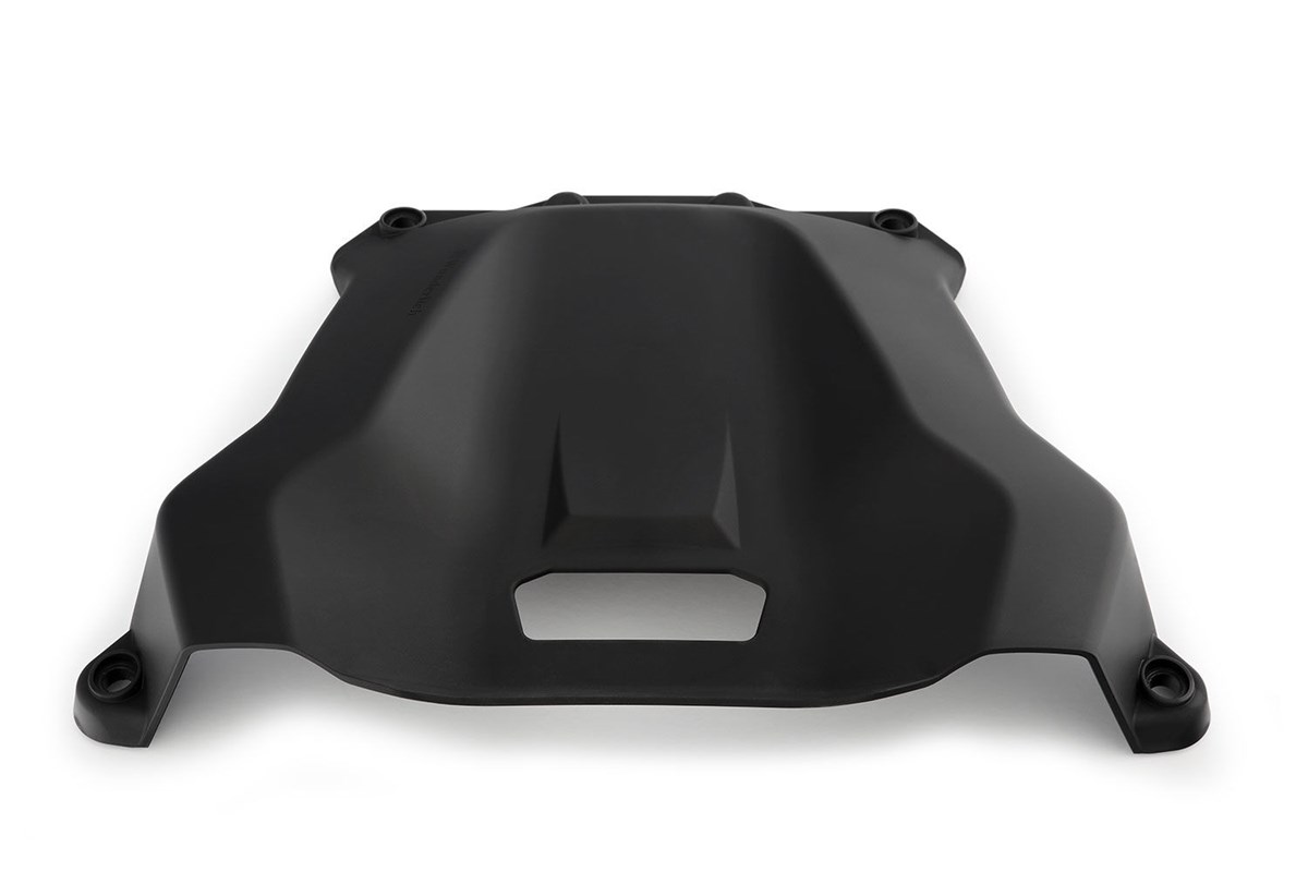 Die Bauteilform sorgt zusätzlich für eine hohe mechanische Stabilität, bei geringem Gewicht. Das Motorschutzcover HELDENBRUST ist mit der 4-Punkt-Befestigung konstruktiv integriert und wertet das anspruchsvolle Motordesign zusätzlich auf.
