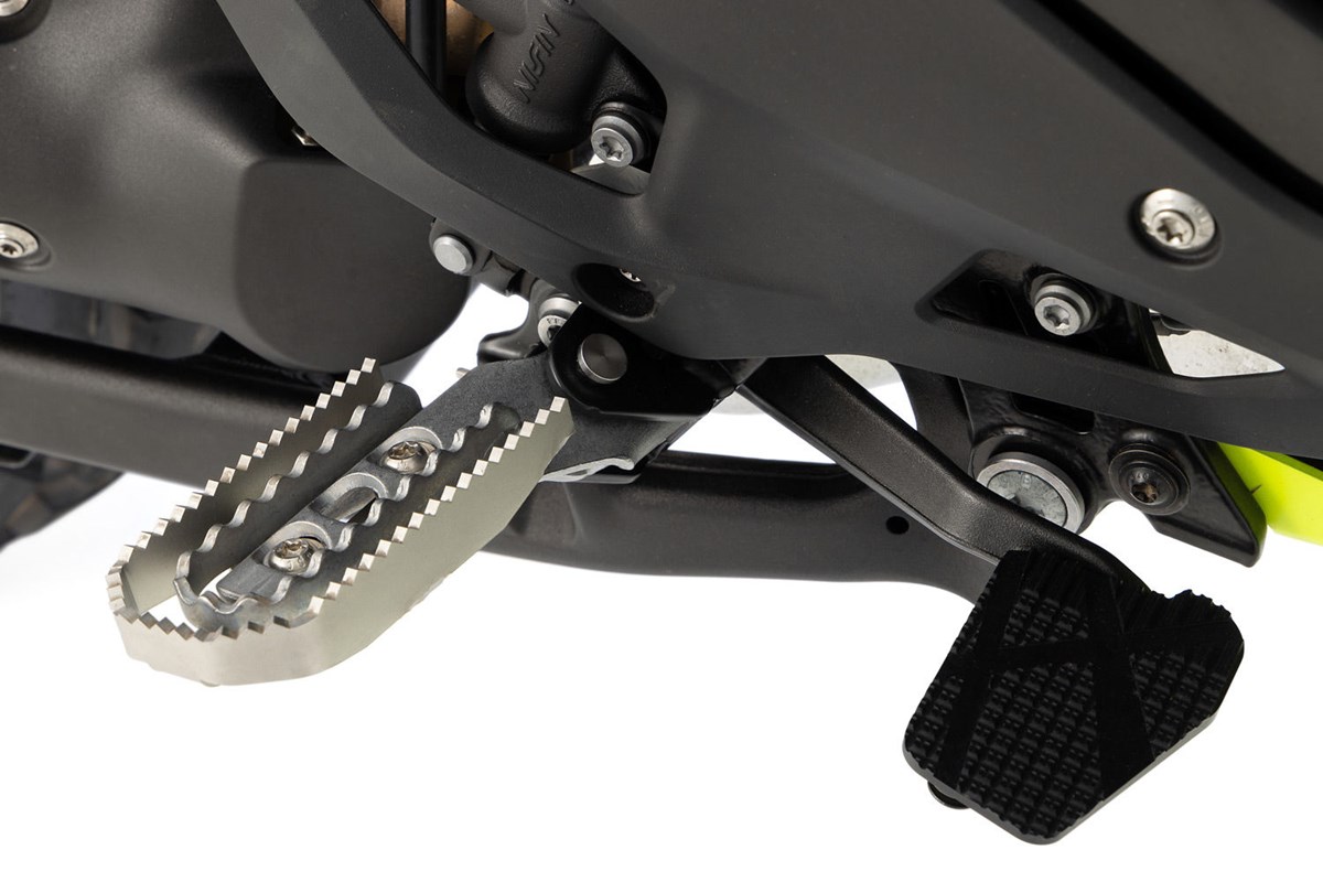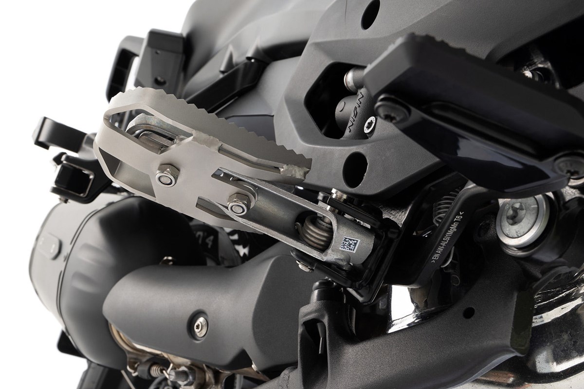 Die ULTIMATE Fußrasten an der BMW R 1300 GS bietet sowohl Onroad als auch Offroad deutliche Vorteile. Sie verwandeln die Serienfußrasten in Endurofußrasten. Auf der Straße erhöhen sie den Komfort, indem sie den Druck gleichmäßiger verteilen, Vibrationen reduzieren und eine bessere Kontrolle durch mehr Aufstandsfläche ermöglichen. Zudem verbessern sie die Ergonomie und bieten mehr Stabilität beim Anhalten. Im Gelände tragen sie zu einer effizienteren Kraftübertragung bei, erleichtern die Gewichtsverlagerung und bieten mehr Halt, besonders bei schwierigen Bedingungen. Sie reduzieren die Ermüdung und erhöhen die Stabilität bei Sprüngen und unebenen Strecken. Hergestellt aus hochwertigem Edelstahl, bieten die Rasten langlebige Qualität und ergonomischen Komfort.
