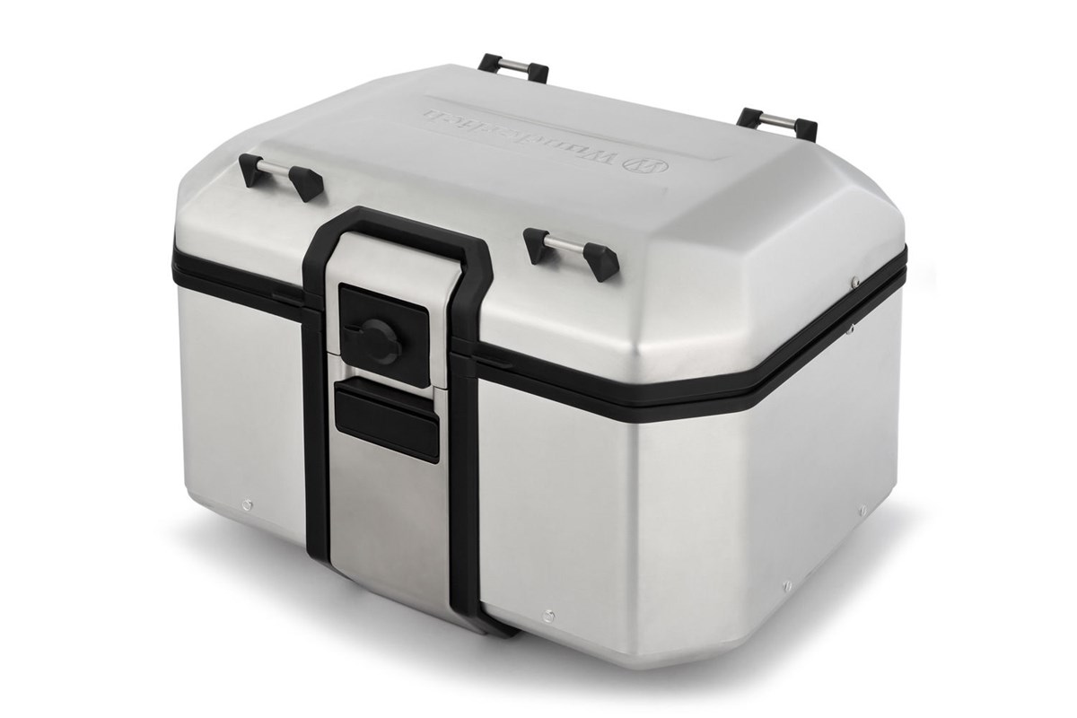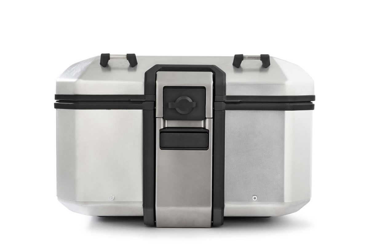 Das Anbringen am Träger ist unkompliziert. Der Schließmechanismus aus Edelstahl verfügt über einen integrierten, einklappbaren Tragegriff, der es ermöglicht, das Topcase in wenigen Sekunden zu öffnen, zu schließen, zu montieren oder demontieren. Das Integraldesign gibt sich zeitgemäß mit hohem Wiedererkennungswert.