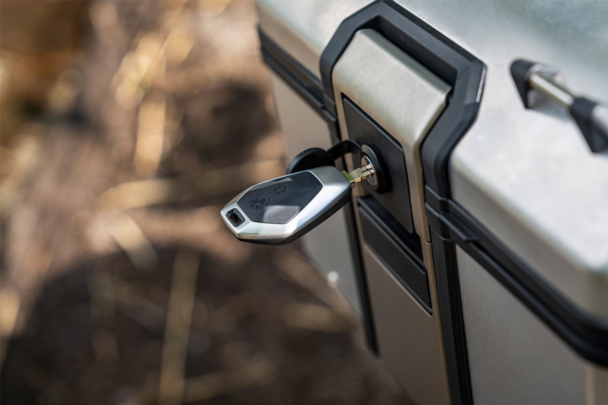 • Dank des gleichschließend auf den Fahrzeugschlüssel codierbaren Schließzylinders ist kein Extra-Schlüssel notwendig