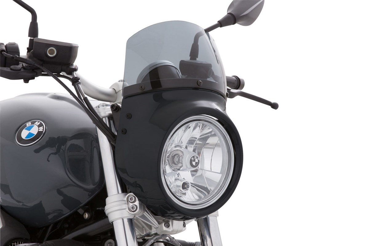 Diese minimalistische Lampenmaske mit einem Touch TT stellt den idealen Kompromiss zwischen Verkleidung und echtem Roadster-Feeling dar. Das Retro-Design ergänzt die Front der R nineT Scrambler ideal und sorgt zudem für eine spürbare Verringerung des Winddrucks gerade bei hohen Dauer-Reisegeschwindigkeiten. Mit ABE.