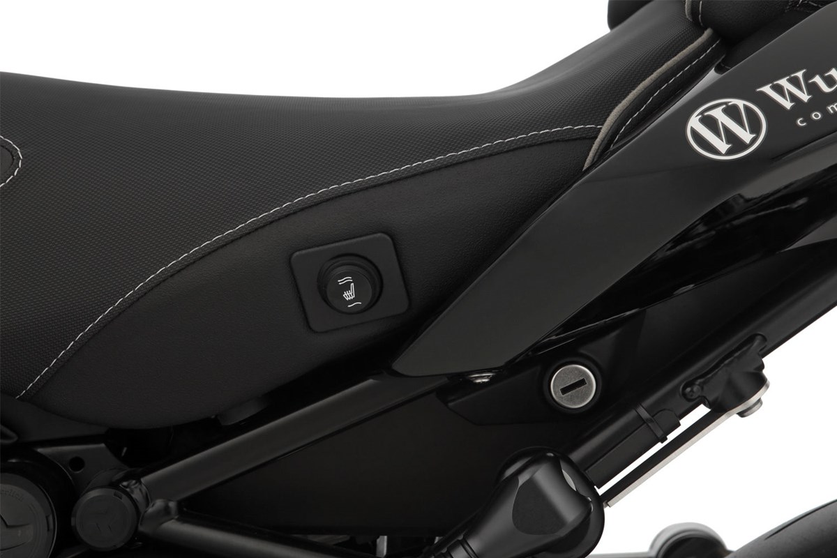 • Die Zweistufensteuerung der Heizleistung erfolgt komfortabel und sicher mit einem Schalter an der linken Sitzflanke – so bleibt die Gashand am Lenker