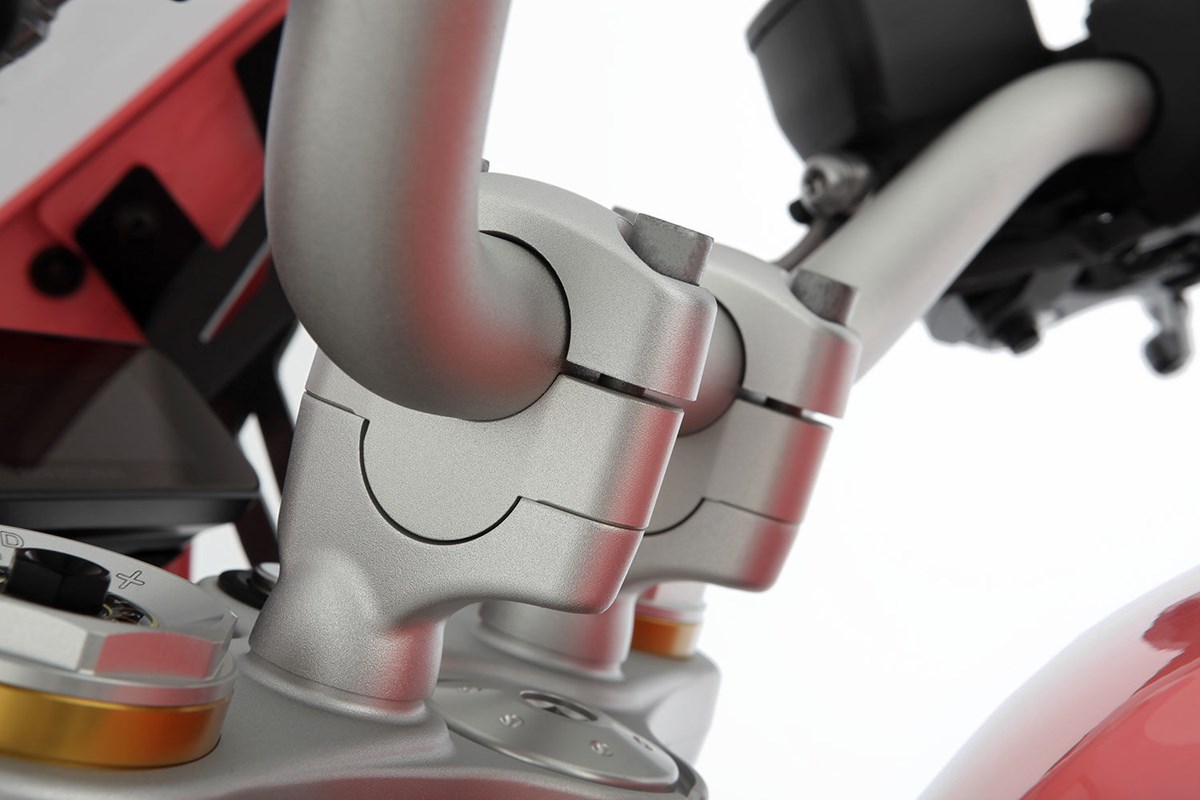 Die von unseren Entwicklern speziell konstruierte Lenkererhöhung erhöht den Lenker moderat um 20 mm. Die ergonomischen Effekte sind beträchtlich, wirken sie sich doch entspannend auf die gesamte Rücken-Muskulatur und die Arme aus und entlasten zugleich Wirbelsäule, Becken und Steißbein. Damit werden die Tourentauglichkeit und der Komfort enorm verbessert. Und entspanntes Fahren sorgt nebenbei für ein Plus an passiver Sicherheit, genau wie die bessere Übersicht über das Verkehrsgeschehen, die sich aus der aufrechteren Sitzposition ergibt.