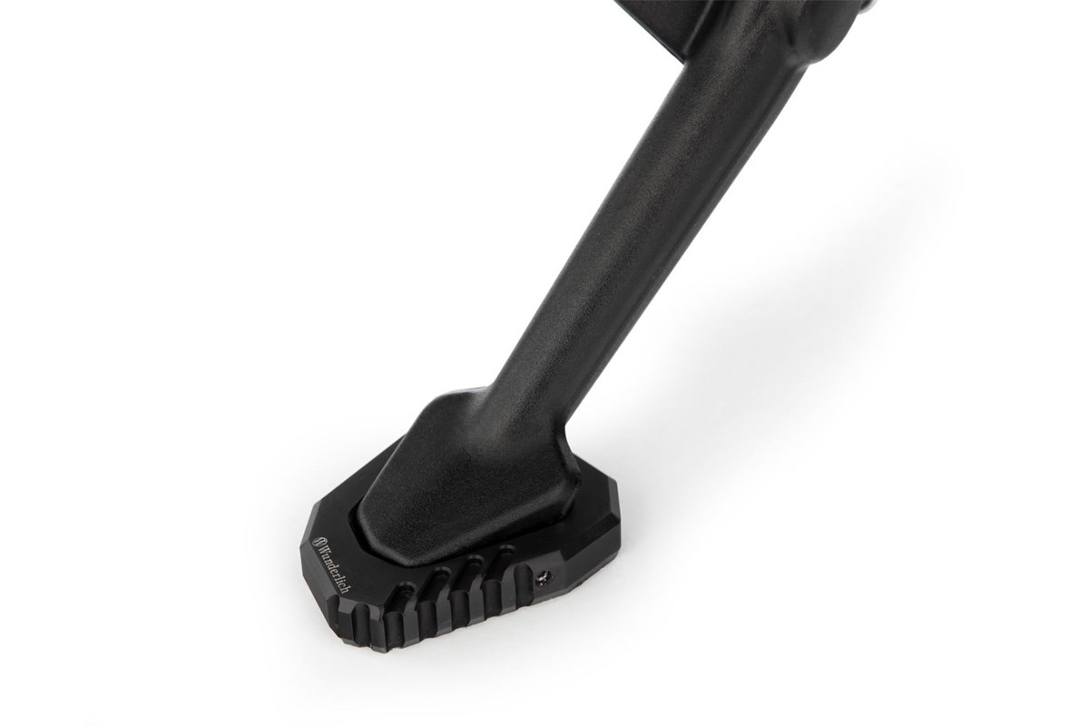 • Die Seitenständer-Auflagenvergrößerung sorgt für den sicheren Stand Ihres Motorrads auf jedem Terrain – auch auf heißen Teerflächen oder aufgeweichtem Untergrund – besonders auch bei voll beladener Maschine