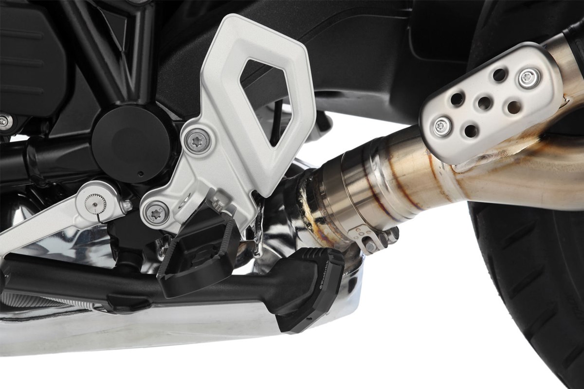 Unsinkbar! Die Wunderlich Seitenständer-Auflagenvergrößerung reduziert die Gefahr des langsamen, unbemerkten Einsinkens Ihrer BMW R 12 und R 12 nineT auf heißen Teerflächen oder aufgeweichtem Untergrund