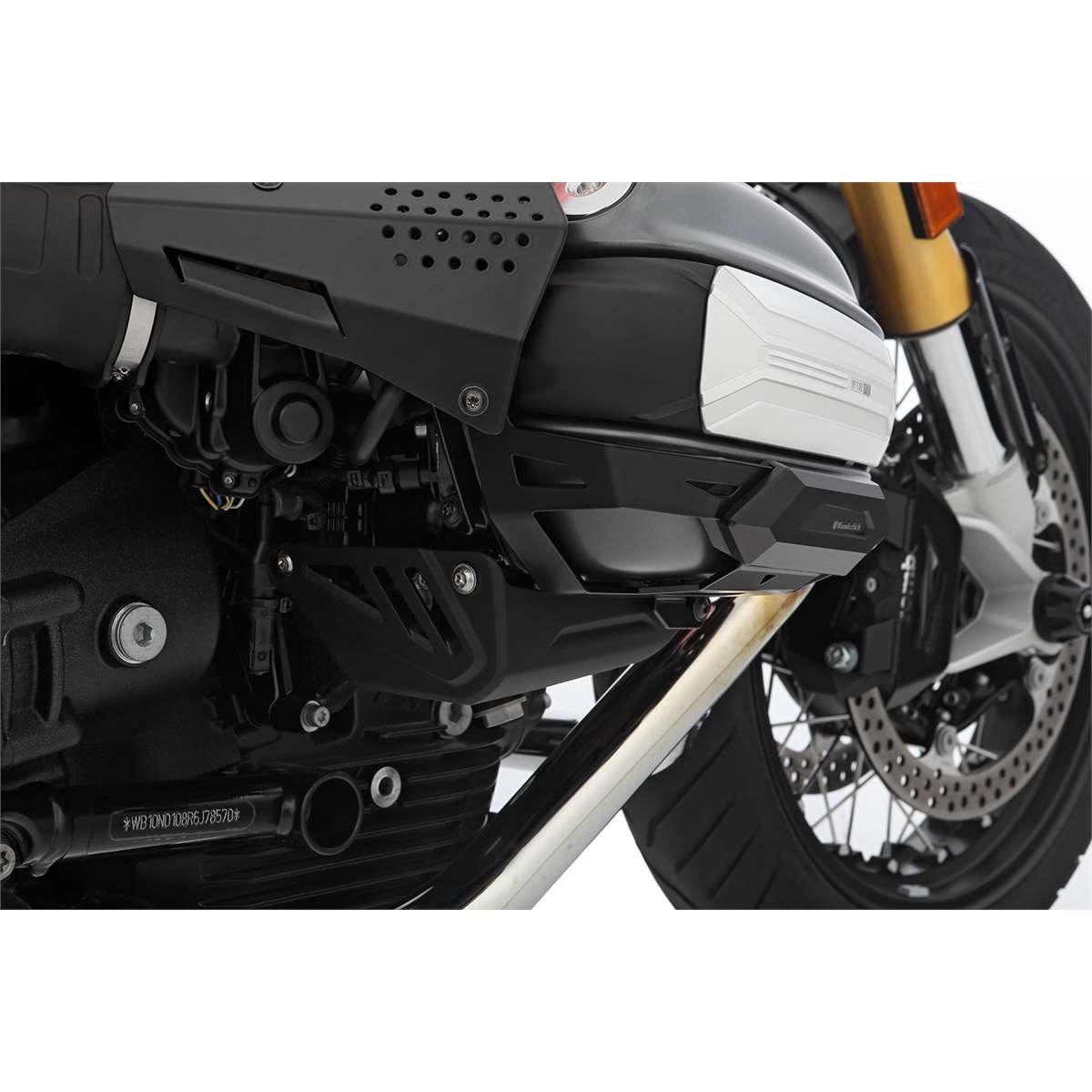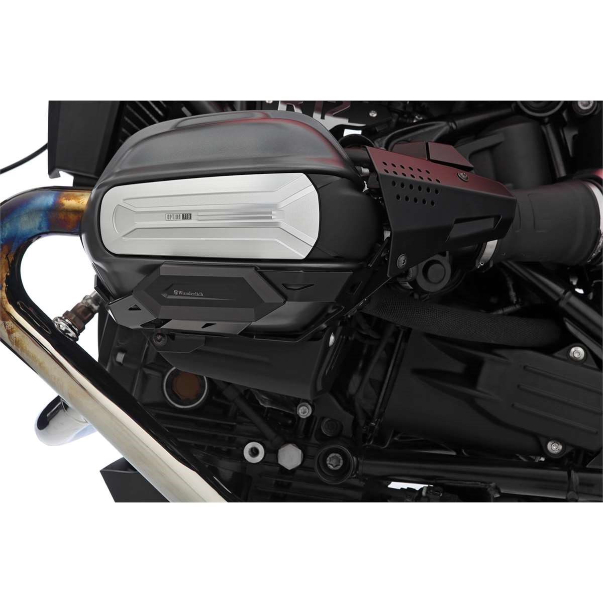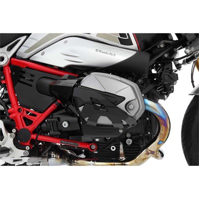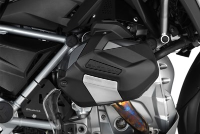 Die Zylinder einer Boxer-BMW sind exponiert. Ein Umfaller, Ausrutscher, das Streifen einer verputzen Wand beim Rangieren, es kann leicht zur mechanischen Beschädigung bis zum Durchschleifen des Ventildeckels, mindestens aber zu ärgerlichen Kratzern führen. Da die Ventildeckel ausschließlich kraftschlüssig montiert sind besteht die Gefahr, dass sich der jeweilige Ventildeckel bei jeglicher Gewalteinwirkung relativ zum Zylinderkopf verschiebt und den aufwendigen Ventiltrieb oder die Befestigungsgewinde unter Umständen in Mitleidenschaft zieht. Deshalb kommt dem zusätzlichen Schutz der Ventildeckel eine besondere Bedeutung zu. Wir haben dafür einen Satz effektiv wirkender, Protektoren entwickelt. Diese zeichnen sich dadurch aus, dass sie mit engem Spaltmaß, konturgenau am Ventildeckel anliegen. Dies setzt eine präzise Fertigung voraus.