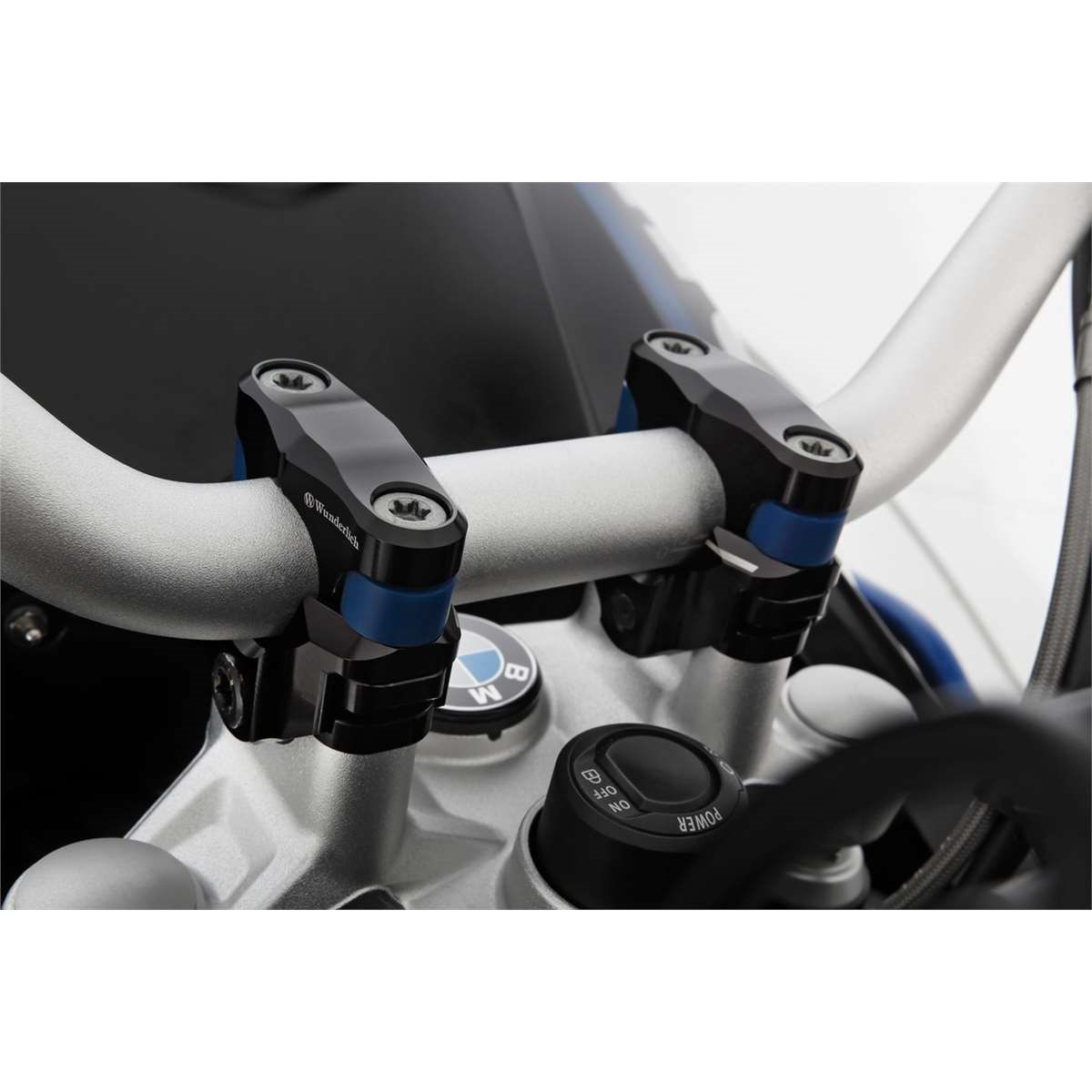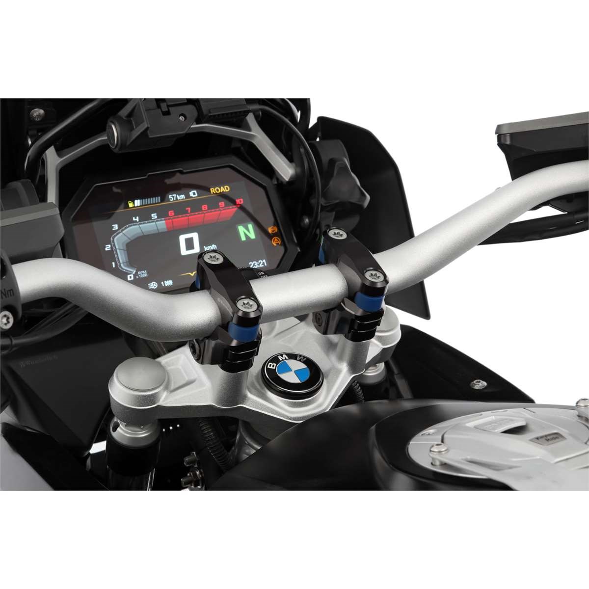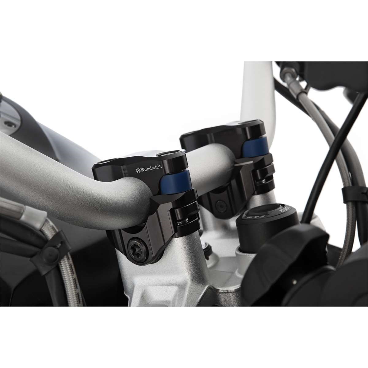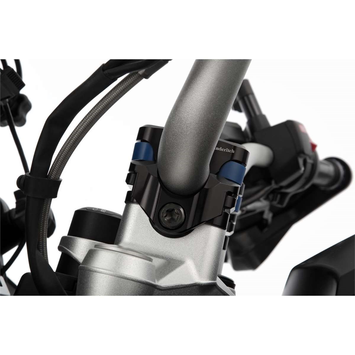Die speziell konstruierte Lenkererhöhung erhöht den Lenker moderat um 27 mm. Die ergonomischen Effekte sind beträchtlich, wirken sie sich doch entspannend auf die gesamte Rücken-Muskulatur und die Arme aus und entlasten zugleich Wirbelsäule, Becken und Steißbein. Damit werden die Tourentauglichkeit und der Komfort enorm verbessert. Und entspanntes Fahren sorgt nebenbei für ein Plus an passiver Sicherheit, genau wie die bessere Übersicht über das Verkehrsgeschehen, die sich aus der aufrechteren Sitzposition ergibt.