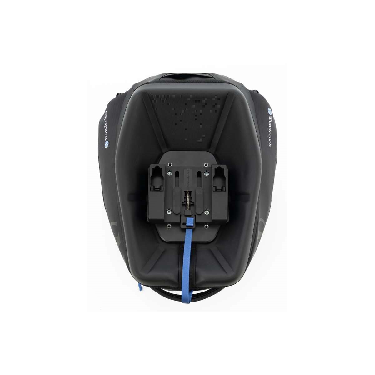 Der CLICK BAG 11 verfügt über 11 Liter Stauvolumen, das sich mit einem umlaufenden Reißverschluss um volle 27 % auf 14 Liter erweitern lässt. Zusätzlich verfügt sie über drei auch aus dem Sattel gut zugängliche Taschen, die jeweils rechts und links sowie auf der dem Fahrer zugewandten Seite integriert sind. Damit erweist sich der CLICK BAG 11 als idealer Allrounder. Das Hauptfach ist dank der großzügigen Öffnung der Verschlussklappe komfortabel zugänglich. Diese haben wir mit einem vielseitig nutzbaren Netzfach im Inneren ausgestattet, das sich mit einem Reißverschluss schließen lässt. Außen verfügt die Abschlusskappe über einen einstellbaren Klettriemen zum Fixieren von Handschuhen oder anderen Utensilien. Er kann alternativ zum bequemen Tragegriff des CLICK BAGs verwendet werden. Der Reißverschluss des Hauptfachs besitzt zwei ergonomische Zipper. Die Schlitten sind mit Öffnungen versehen, durch die man den CLICK BAG mit einem handelsüblichen Schloss sicher verschließen kann.